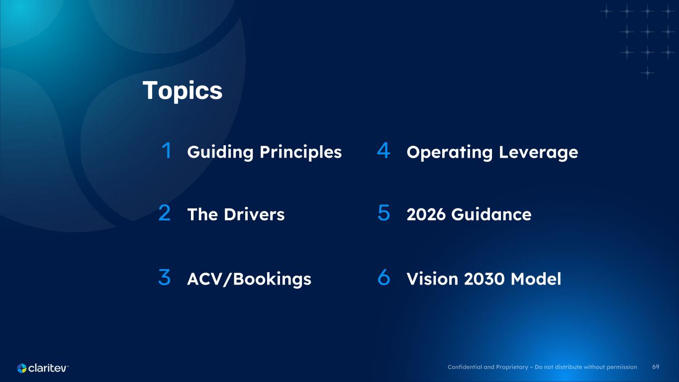 Confidential and Proprietary – Do not distribute without permission 69 1 Guiding Principles 2 The Drivers 3 ACV/Bookings 4 Operating Leverage 5 2026 Guidance 6 Vision 2030 Model Topics