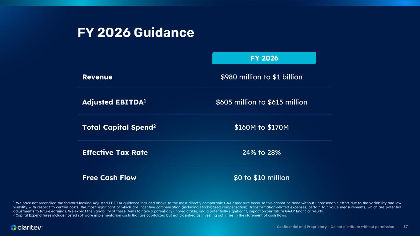 Confidential and Proprietary – Do not distribute without permission 86 2026 Guidance