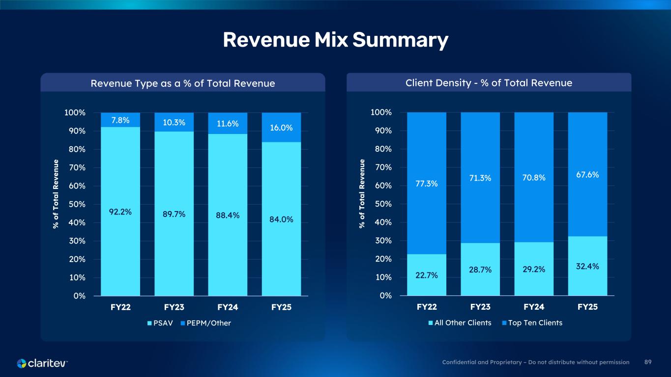 Confidential and Proprietary – Do not distribute without permission 89 Revenue Mix Summary % o f To ta l R ev en ue Revenue Type as a % of Total Revenue 92.2% 89.7% 88.4% 84.0% 7.8% 10.3% 11.6% 16.0% 0% 10% 20% 30% 40% 50% 60% 70% 80% 90% 100% FY22 FY23 FY24 FY25 PSAV PEPM/Other 22.7% 28.7% 29.2% 32.4% 77.3% 71.3% 70.8% 67.6% 0% 10% 20% 30% 40% 50% 60% 70% 80% 90% 100% FY22 FY23 FY24 FY25 All Other Clients Top Ten Clients % o f To ta l R ev en ue Client Density - % of Total Revenue