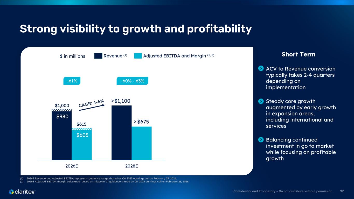 Confidential and Proprietary – Do not distribute without permission 91 From The Turn to the Way Up Revenue (1) Adjusted EBITDA Margin (2) (1) 2026E Revenue represents guidance range as of February 23, 2026. (2) 2026E Adjusted EBITDA margin calculated based on midpoint of guidance shared on Q4 2025 earnings call on February 23, 2026. $ in millions $962 $931 $965 $980 2023A 2024A 2025A 2026E 64% 62% 62% ~61% ‘The Turn’ ‘The Way Up’ $1000 ‘The Foundation’
