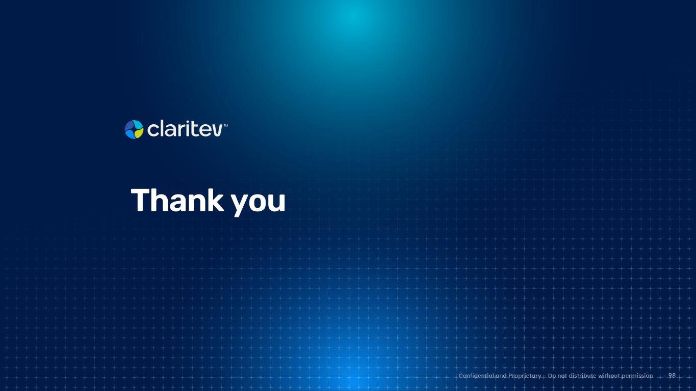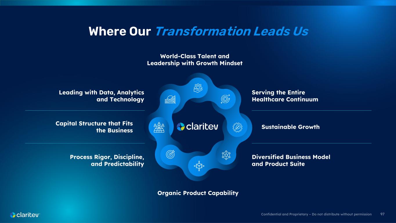 Confidential and Proprietary – Do not distribute without permission 97 Where Our Transformation Leads Us World-Class Talent and Leadership with Growth Mindset Serving the Entire Healthcare Continuum Sustainable Growth Diversified Business Model and Product Suite Organic Product Capability Leading with Data, Analytics and Technology Capital Structure that Fits the Business Process Rigor, Discipline, and Predictability
