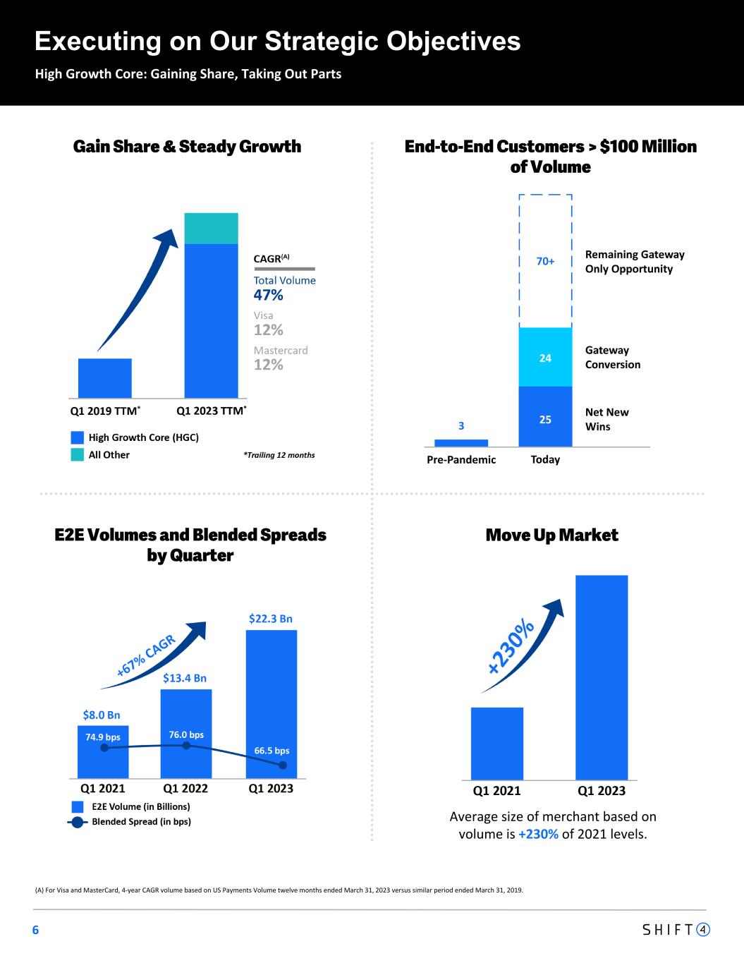 6 E2E Volumes and Blended Spreads by Quarter Gain Share & Steady Growth End-to-End Customers > $100 Million of Volume High Growth Core: Gaining Share, Taking Out Parts Executing on Our Strategic Objectives (A) For Visa and MasterCard, 4-year CAGR volume based on US Payments Volume twelve months ended March 31, 2023 versus similar period ended March 31, 2019. Average size of merchant based on volume is +230% of 2021 levels. Move Up Market