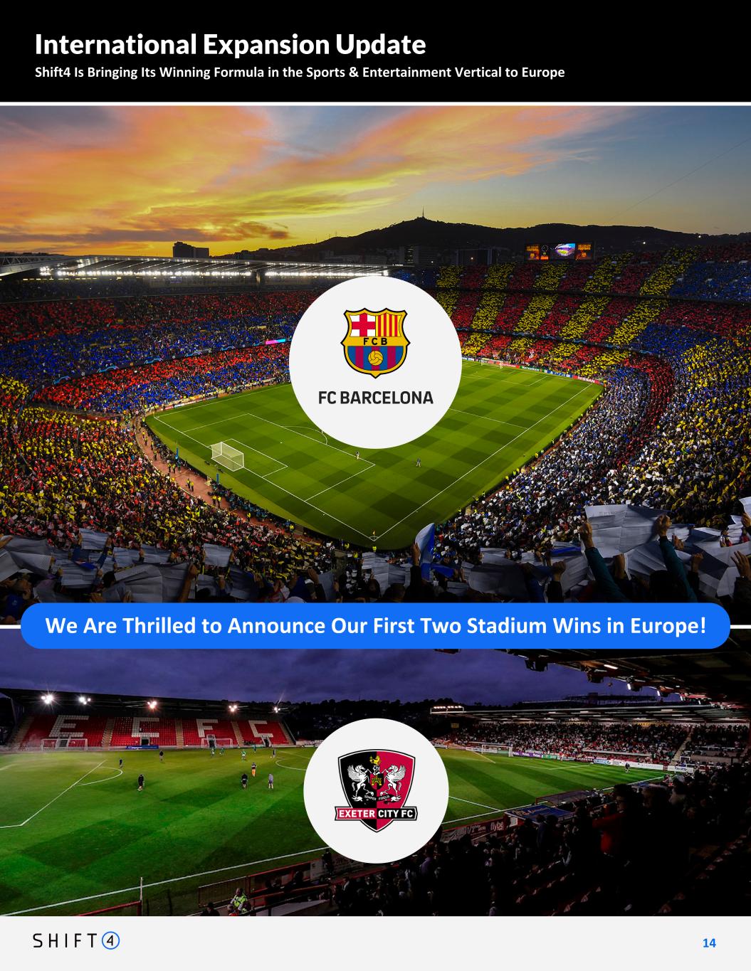 International Expansion Update Shift4 Is Bringing Its Winning Formula in the Sports & Entertainment Vertical to Europe 1 4 14 2024 GOAL & BEYOND We Are Thrilled to Announce Our First Two Stadium Wins in Europe!