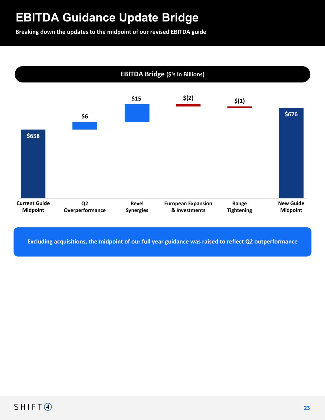 EBITDA Bridge ($'s in Billions) EBITDA Guidance Update Bridge Breaking down the updates to the midpoint of our revised EBITDA guide 2 3 23 Excluding acquisitions, the midpoint of our full year guidance was raised to reflect Q2 outperformance