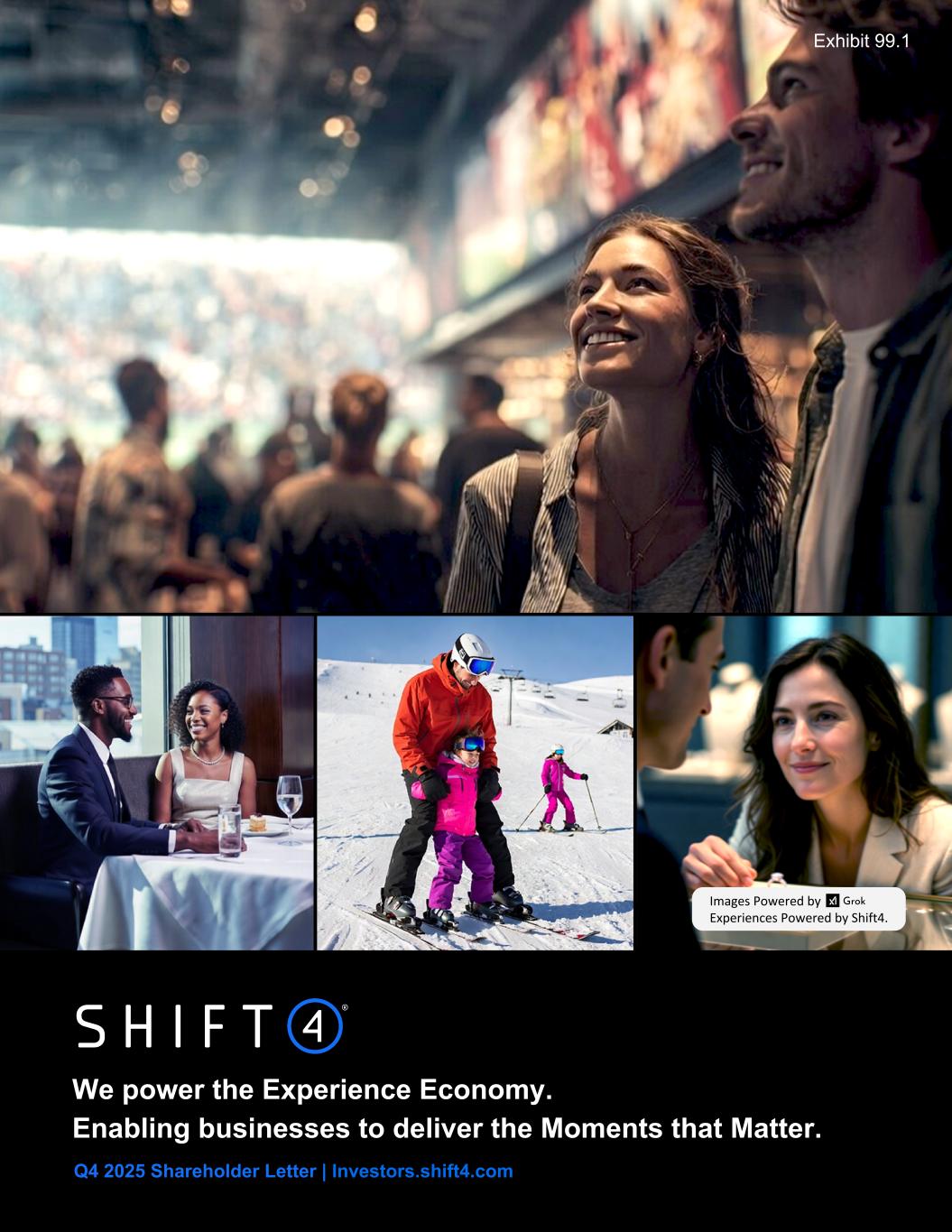 We power the Experience Economy. Enabling businesses to deliver the Moments that Matter. Q4 2025 Shareholder Letter | Investors.shift4.com note: will update one of these imagtes Images Powered by Experiences Powered by Shift4. Exhibit 99.1