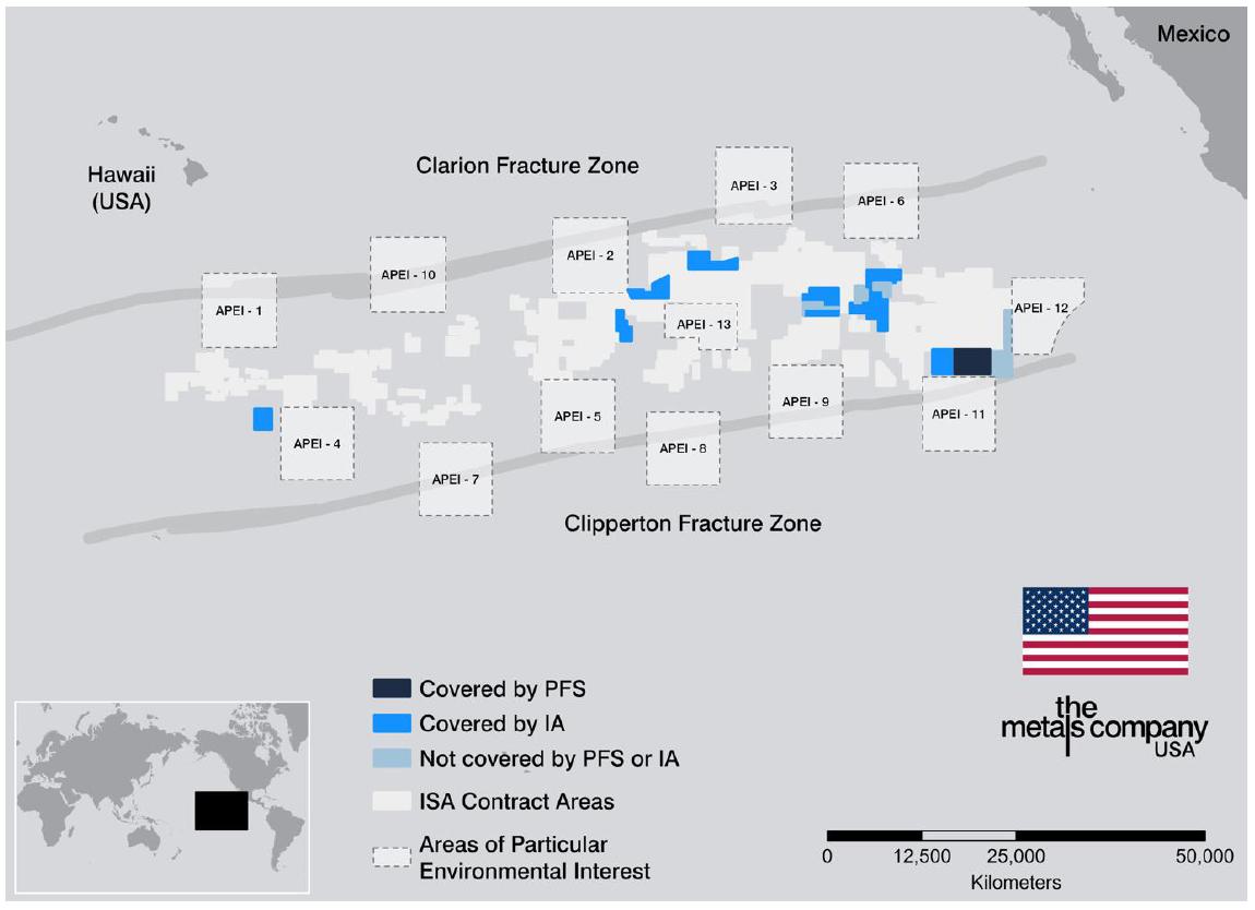 Alongside the PFS, TMC announced the publication of an Initial Assessment (IA) for the remainder of its resource in the NORI and TOML blocks in the CCZ, with a measured and indicated mineral resource of 73Mt of wet nodules grading 1.30% nickel, 0.20% cobalt, 1.2% copper and 30.2% manganese with an abundance of 12.8 Kg/m2 and an inferred mineral resource of 1206 Mt of wet nodules grading 1.30% nickel, 0.20% cobalt, 1.1% copper and 28.7% manganese with an abundance of 11.6 Kg/m2 supporting an After-tax NPV of $18.1 billion and After-tax IRR of 35.6%.