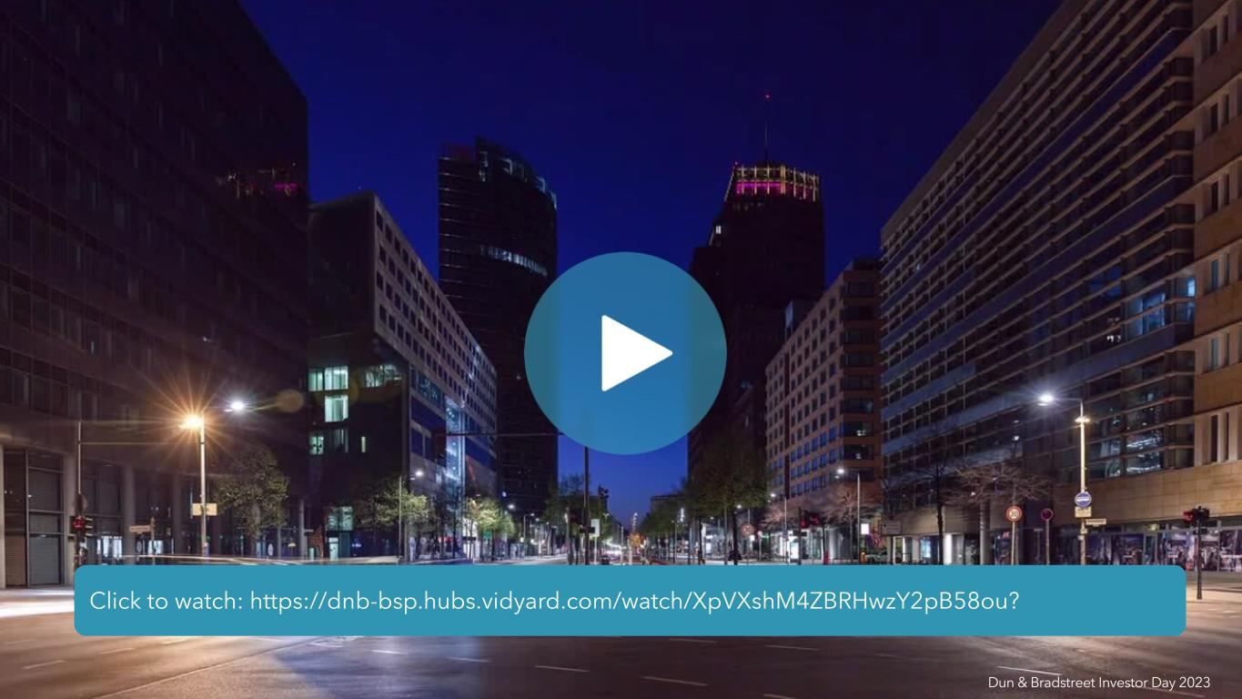 30 Dun & Bradstreet Investor Day 2023 Click to watch: https://dnb-bsp.hubs.vidyard.com/watch/XpVXshM4ZBRHwzY2pB58ou? Dun & Bradstreet Investor Day 2023