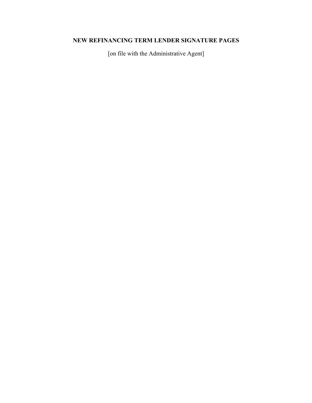 NEW REFINANCING TERM LENDER SIGNATURE PAGES [on file with the Administrative Agent]