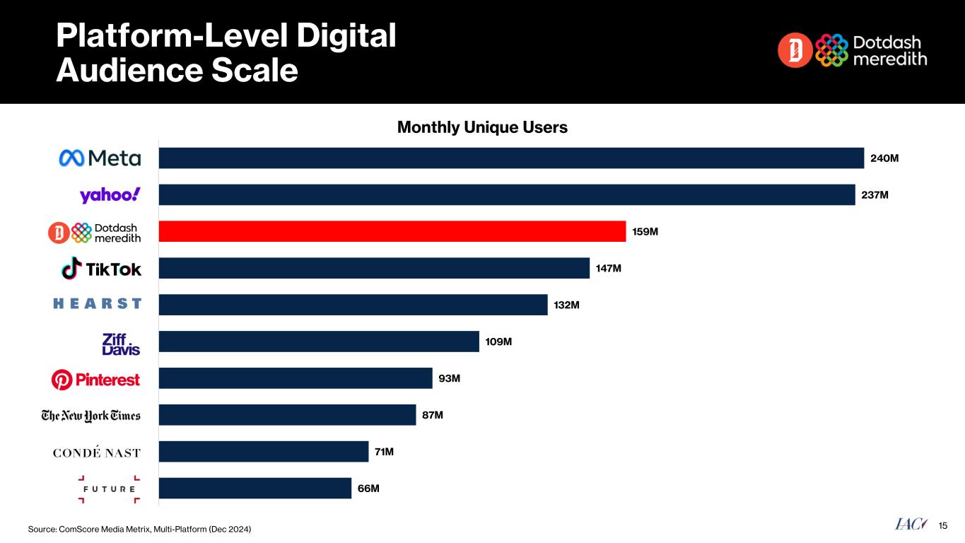 World-Class Brand Portfolio with Platform-Level Reach 14 Market-leading digital audiences across core consumer categories Source: ComScore Media Metrix, Multi-Platform (Dec 2024) 1 Includes other categories and revenue not attributed to a brand TRAVEL 12M MAUs 21% 25% 17% 7% 11% 19%1% of Digital Revenue 159M U.S. Unique Online Monthly Viewers FOOD ENTERTAINMENT HOME BEAUTY & STYLE HEALTH FINANCE 80M MAUs 72M MAUs 39M MAUs 22M MAUs 30M MAUs 27M MAUs TOP 15 #1 #1 #1 #2 TOP 5 TOP 10