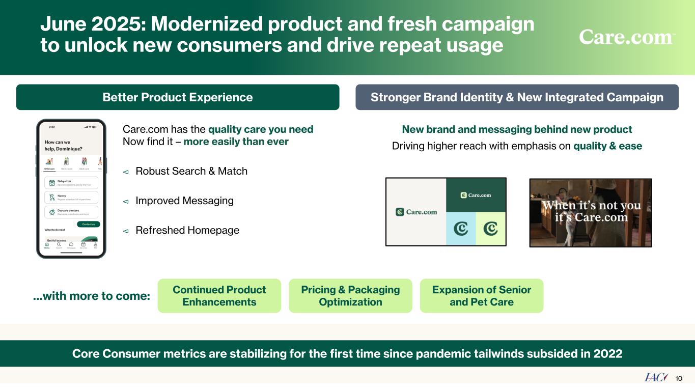 Market Leader Serving Families through Two Channels: Consumer & Enterprise 9 • Care for Business offers employers a full suite of care solutions designed to support and retain workforces. Employers pay an annual subscription or a minimum • Online consumer marketplace directly serves both seekers and caregivers throughout the US, with a variety of subscription plans available $182M $178M +700 Enterprise Clients A leading digital marketplace for finding caregivers $375B+ Market for Family Care, Large TAM across verticals with Growing Demand 5 Verticals Holistic support for all care needs: Child, Senior, Adult, Pet, Housekeeping Largest Child and Senior caregiver pool of any online platform; approximately 700K Caregivers 62% Organic & Direct Load Visitors1 +31M Lives Covered 1. Percent of new, unregistered visitors Revenue (LTM 6/30/25)