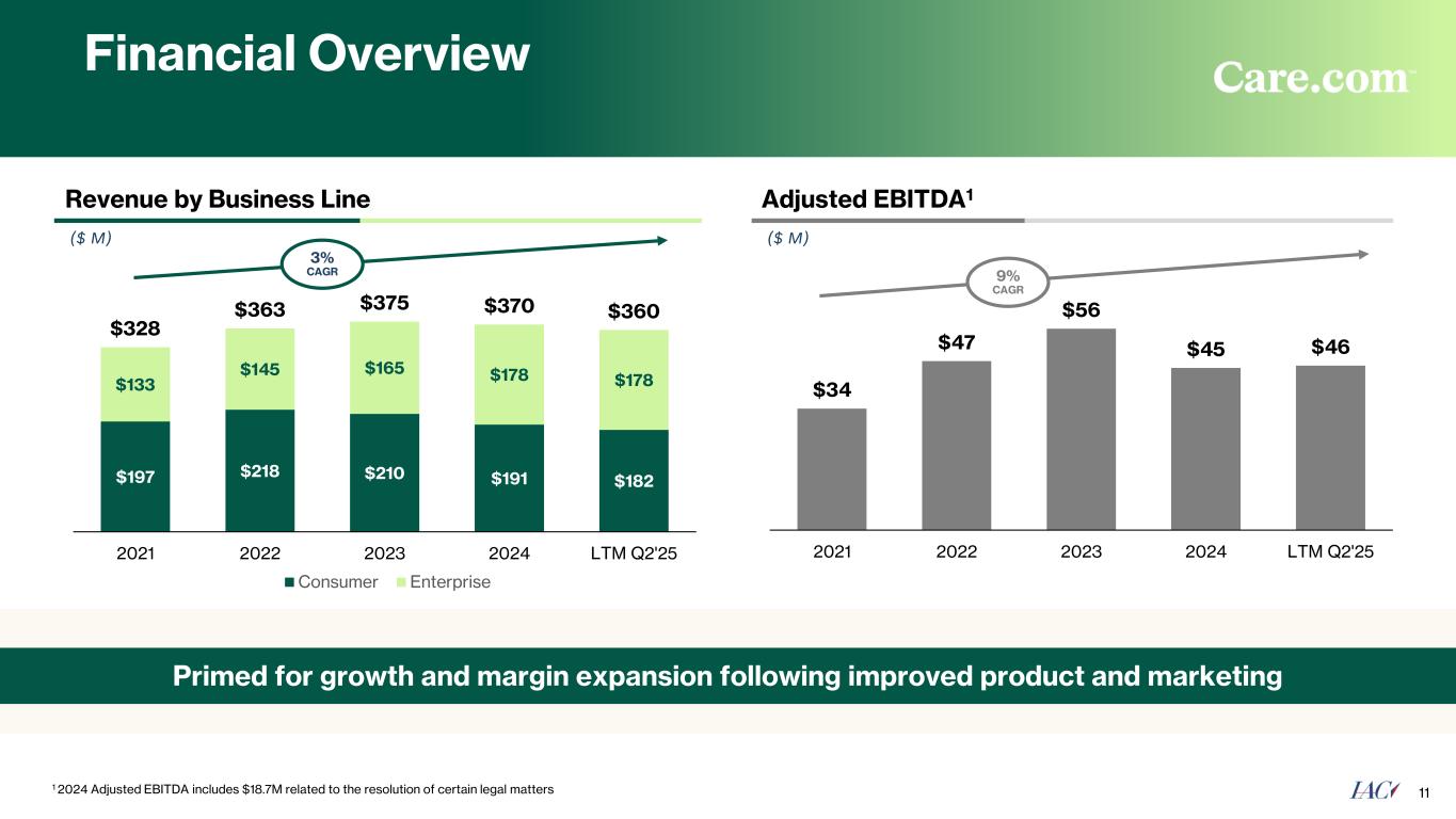 Core Consumer metrics are stabilizing for the first time since pandemic tailwinds subsided in 2022 June 2025: Modernized product and fresh campaign to unlock new consumers and drive repeat usage 10 Care.com has the quality care you need Now find it – more easily than ever ⊲ Robust Search & Match ⊲ Improved Messaging ⊲ Refreshed Homepage Better Product Experience Stronger Brand Identity & New Integrated Campaign New brand and messaging behind new product Driving higher reach with emphasis on quality & ease Continued Product Enhancements Pricing & Packaging Optimization Expansion of Senior and Pet Care …with more to come: