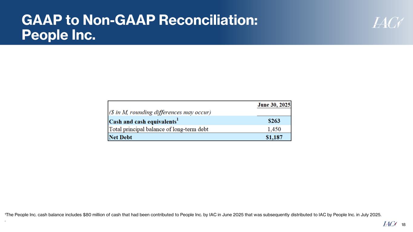 GAAP to Non-GAAP Reconciliation: People Inc. 18 1The People Inc. cash balance includes $80 million of cash that had been contributed to People Inc. by IAC in June 2025 that was subsequently distributed to IAC by People Inc. in July 2025. .