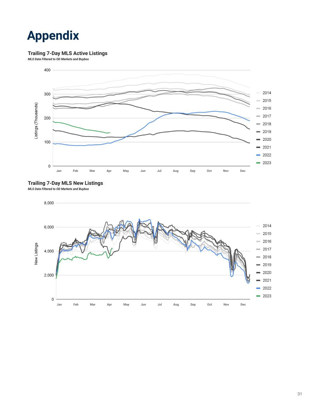 Trailing 7-Day MLS New Listings MLS Data Filtered to OD Markets and Buybox Appendix Trailing 7-Day MLS Active Listings MLS Data Filtered to OD Markets and Buybox 31 Jan Feb Mar Apr May Jun Jul Aug Sep Oct Nov Dec Jan Feb Mar Apr May Jun Jul Aug Sep Oct Nov Dec