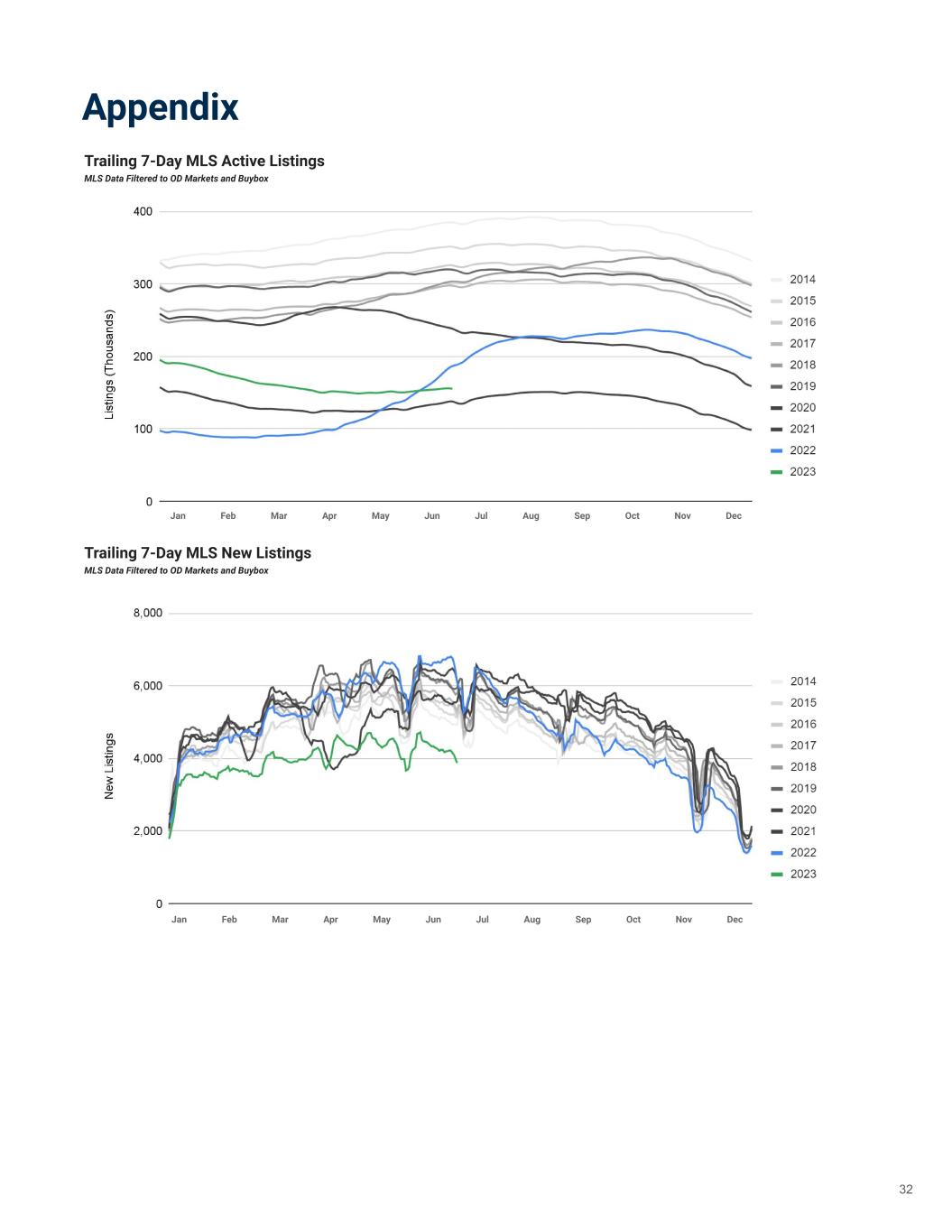 Trailing 7-Day MLS New Listings MLS Data Filtered to OD Markets and Buybox Appendix Trailing 7-Day MLS Active Listings MLS Data Filtered to OD Markets and Buybox Jan Feb Mar Apr May Jun Jul Aug Sep Oct Nov Dec Jan Feb Mar Apr May Jun Jul Aug Sep Oct Nov Dec 32