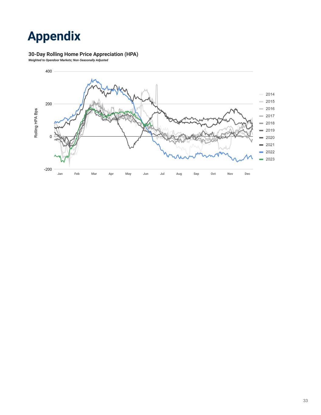 Appendix 30-Day Rolling Home Price Appreciation (HPA) Weighted to Opendoor Markets; Non-Seasonally Adjusted Jan Feb Mar Apr May Jun Jul Aug Sep Oct Nov Dec 33