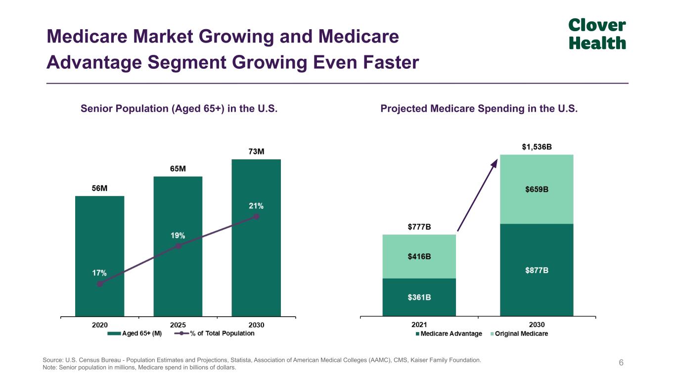 Brady Priest CEO of Home Care _____________________________________________________________________________ >20 years in industry Andrew Toy Chief Executive Officer __________________________________________________________________ >20 years of technology & healthcare leadership 5 Our Leadership Team Scott Leffler Chief Financial Officer _____________________________________________________________________________ >20 years of financial leadership Jamie Reynoso CEO of Medicare Advantage _____________________________________________________________________________ >30 years of healthcare leadership Joseph Martin General Counsel _____________________________________________________________________________ >20 years of legal experience Rachel Fish Chief People Officer _____________________________________________________________________________ >15 years in industry Wendy Richey Chief Compliance Officer _____________________________________________________________________________ >30 years in industry Aric Sharp CEO of Value Based Care _____________________________________________________________________________ >25 years in industry Conrad Wai Chief Technology Officer _____________________________________________________________________________ >15 years of technology experience Vivek Garipalli Executive Chairman _____________________________________________________________________________ >15 years of healthcare leadership