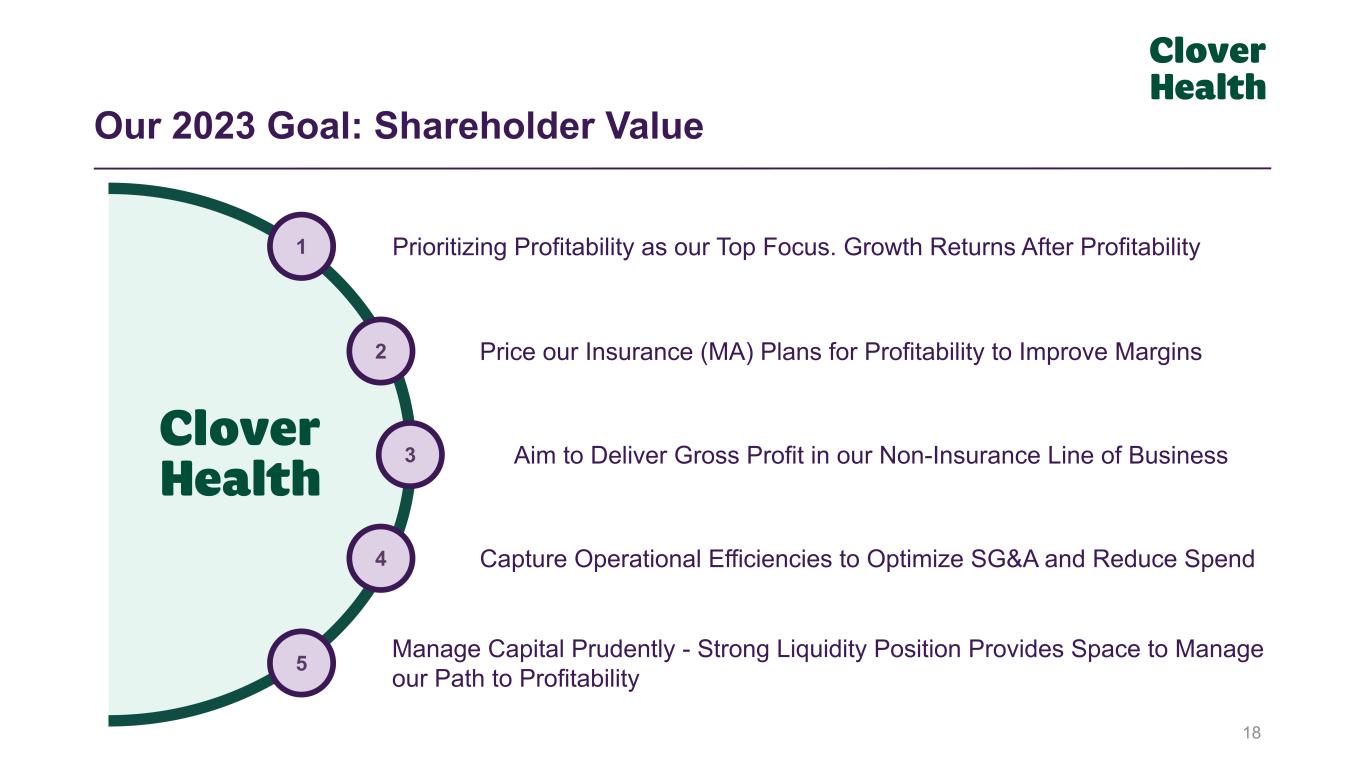 18 Manage Capital Prudently - Strong Liquidity Position Provides Space to Manage our Path to Profitability Prioritizing Profitability as our Top Focus. Growth Returns After Profitability Capture Operational Efficiencies to Optimize SG&A and Reduce Spend Price our Insurance (MA) Plans for Profitability to Improve Margins 1 5 2 4 3 Aim to Deliver Gross Profit in our Non-Insurance Line of Business Our 2023 Goal: Shareholder Value