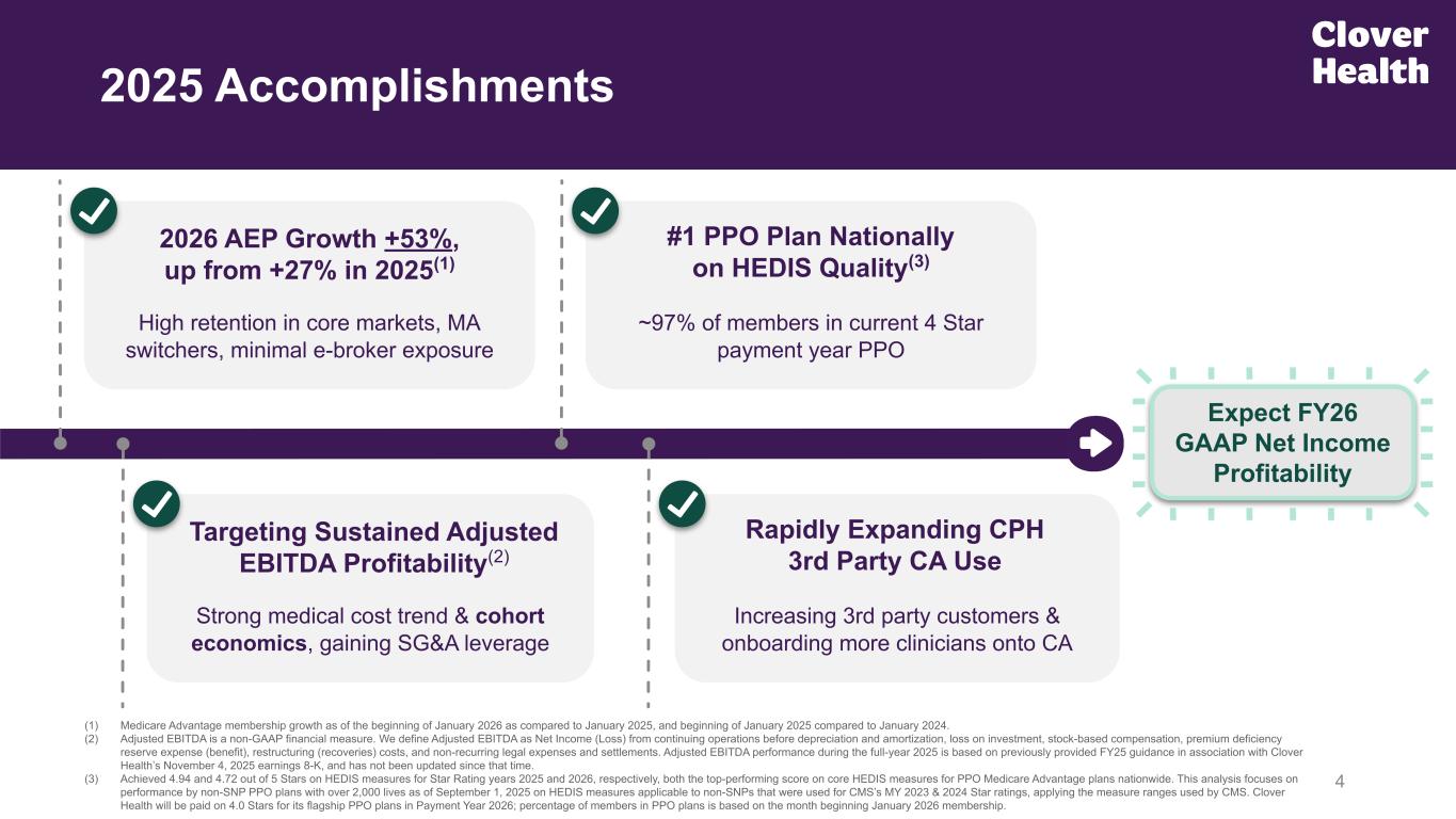 Positioned for 2026 GAAP Net Income Profitability 3 Strong Path to Success in 2026 Market-Leading Growth Industry-Leading Clinical Quality