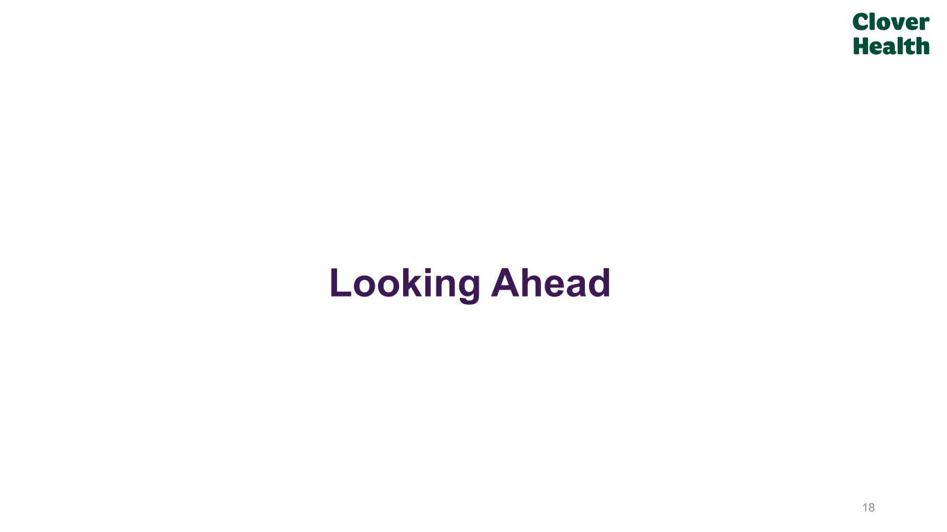 Proven PPO Advantage in Clover MA Plan Novel clinical insights at the point-of-care Nation-Leading PPO HEDIS(1) Performance Driven by Counterpart's HEDIS flywheel Unified Platform Across Risk, Quality, & Cost Hundreds of sources centralized into single longitudinal solution 17 Industry Reality Counterpart Health A Uniquely Proven & Repeatable Solution Wide Network PPO Pressure Stars Pressure Fragmented Tools Independent PCP Reach Limited Enterprise-Grade Capabilities; Rapid Integration Deployable across large systems & independent practices nationwide #1 PPO HEDIS ~1,500 MCR Differential (1) Clover Health’s Medicare Advantage PPO plans received a score of 4.72 on HEDIS for the Plan Year 2026, Payment Year 2027 Star ratings, which is the #1 score on HEDIS quality measures in the nation. This analysis focuses on performance by non-SNP PPO plans with over 2,000 lives as of September 1, 2025 on HEDIS measures applicable to non-SNPs that were used for CMS’s MY 2024 Star ratings, applying the measure ranges used by CMS.