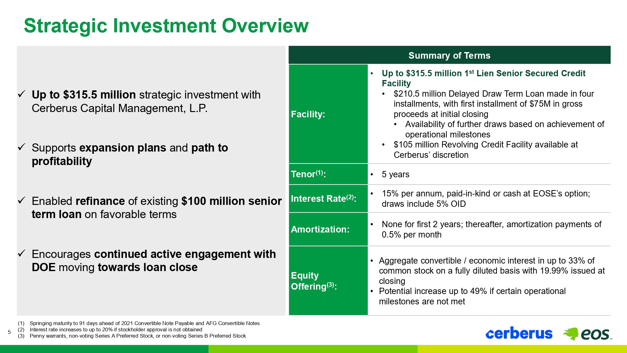 Eos Energy Enterprises June 24, 2024 Cerberus Strategic Investment