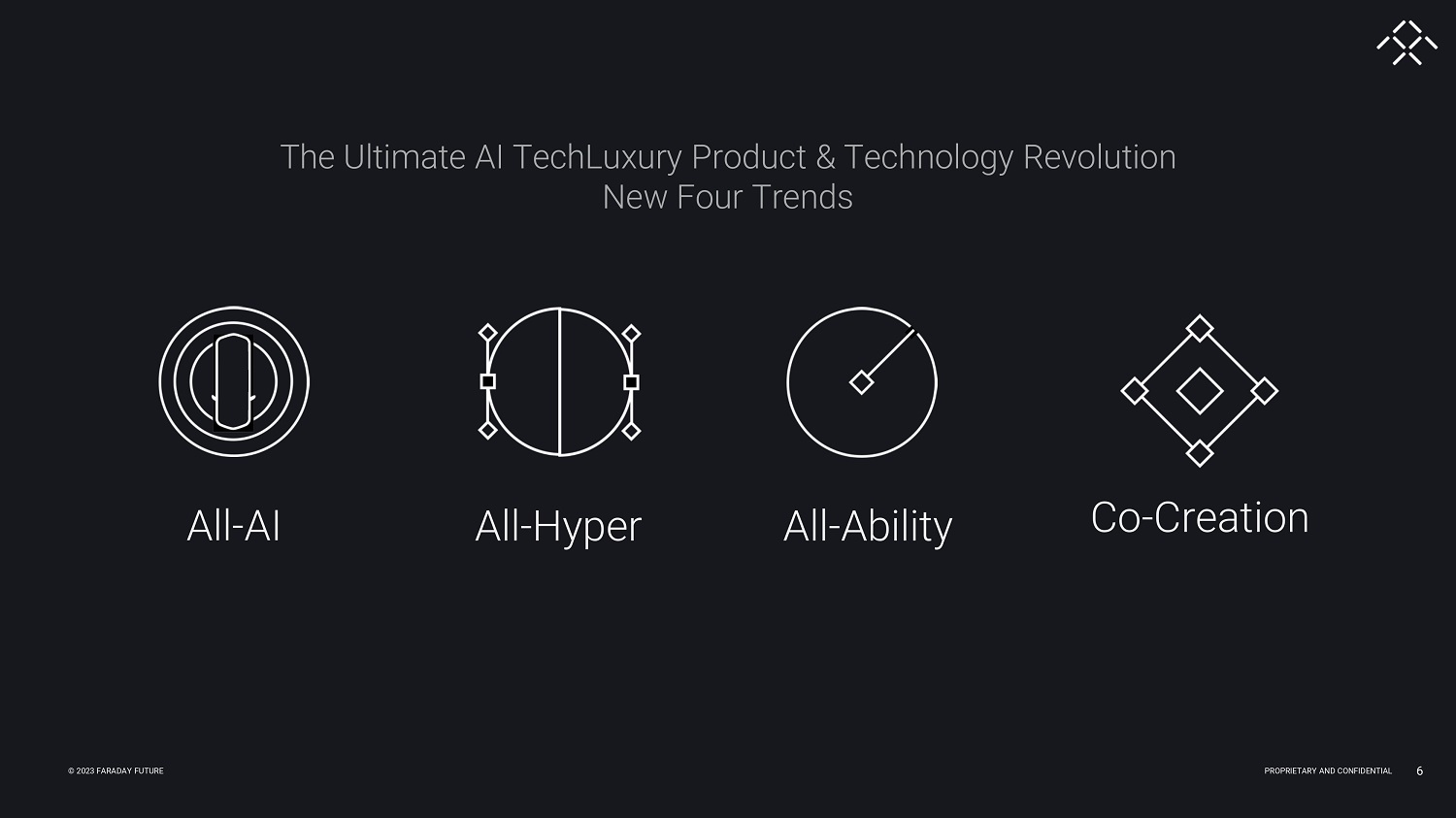 Al l - A bility Al l - Hyper The Ultimate AI TechLuxury Product & Technology Revolution New Four Trends A ll - AI C o - Cr e ation © 2023 FARADAY FUTURE PROPRIETARY AND CONFIDENTIAL 6