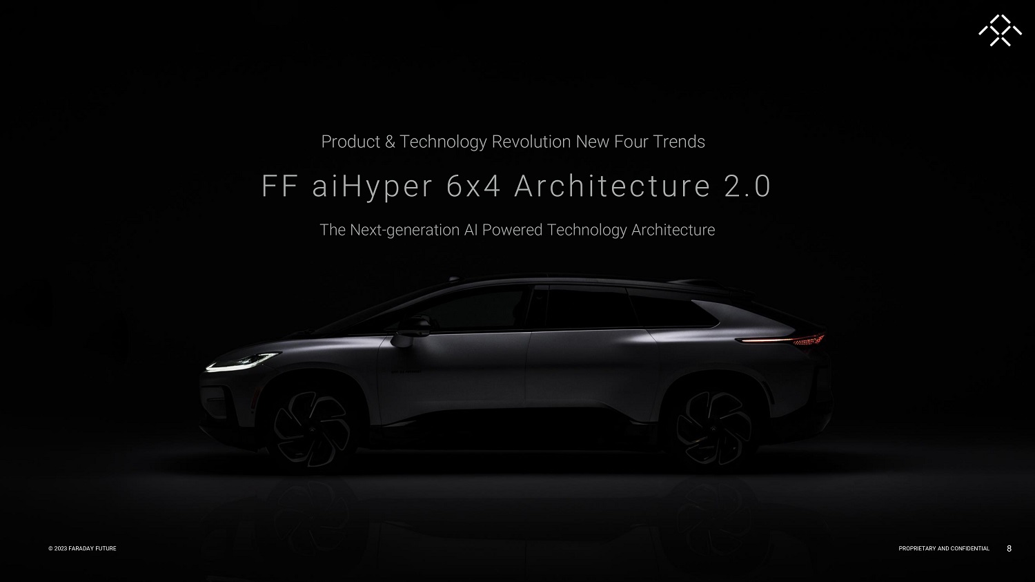 F F a i H y p e r 6 x 4 A r c h i te c t u r e 2 . 0 The Next - generation AI Powered Technology Architecture Product & Technology Revolution New Four Trends 8 © 2023 FARADAY FUTURE PROPRIETARY AND CONFIDENTIAL