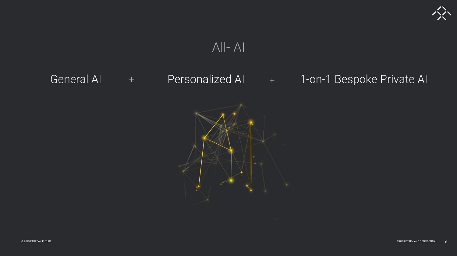 General AI Personalized AI 1 - on - 1 Bespoke Private AI Al l - AI + + 9 © 2023 FARADAY FUTURE PROPRIETARY AND CONFIDENTIAL