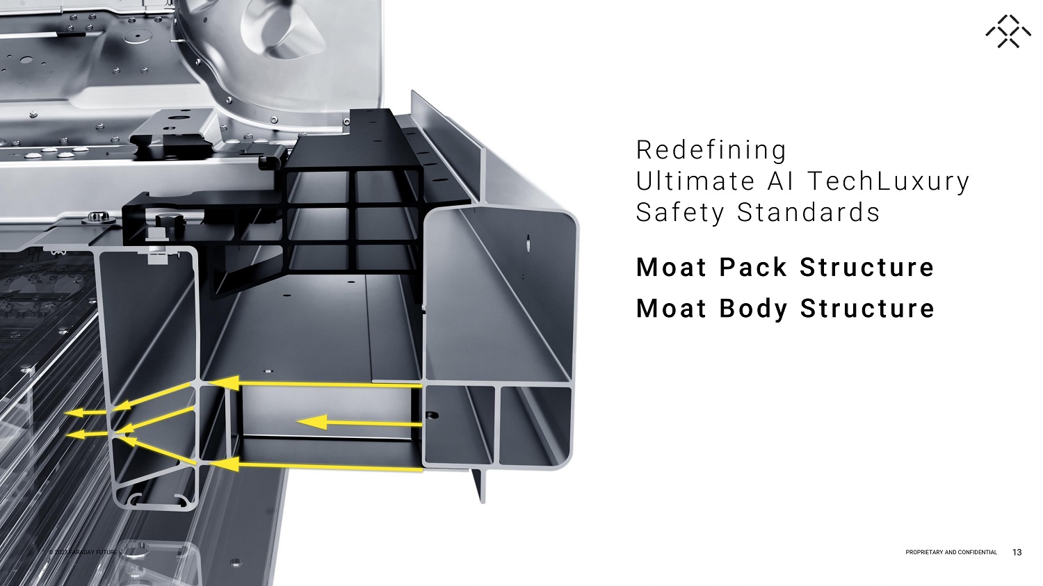 R ede f i n i n g U l t i m at e A I T ec h L u x ur y S a f e t y S t a n da r d s M o a t P a c k S t r u c t u r e M o a t B o d y S t r u c t u r e 13 © 2023 FARADAY FUTURE PROPRIETARY AND CONFIDENTIAL