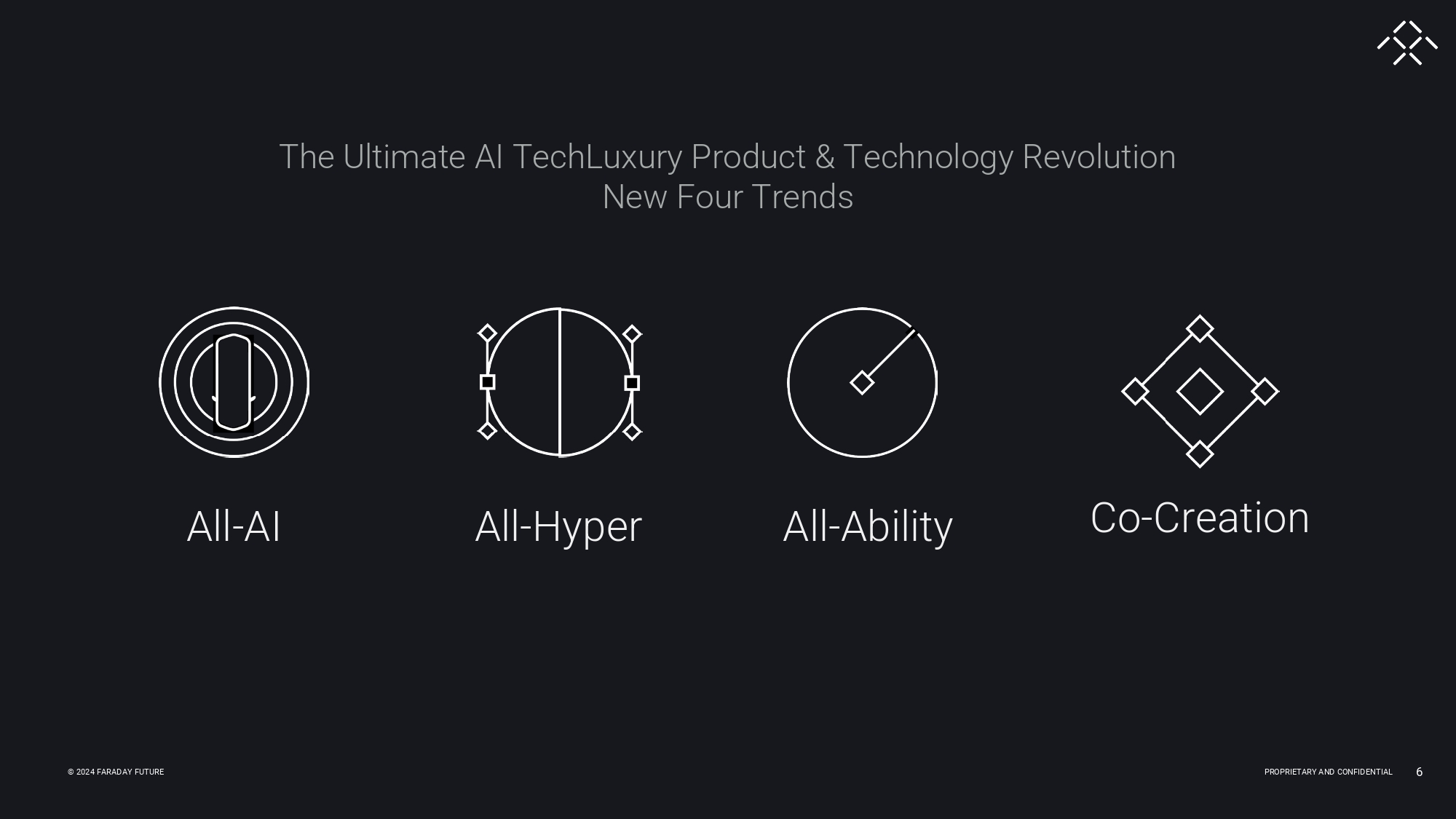 All - Ability All - Hypeí The Ultimate AI TechLuxuíy Píoduct & Technology Revolution New Fouí Tíends A ll - AI Co - Cíeation 6 © 2024 FARADAY FUTURE PROPRIETARY AND CONFIDENTIAL