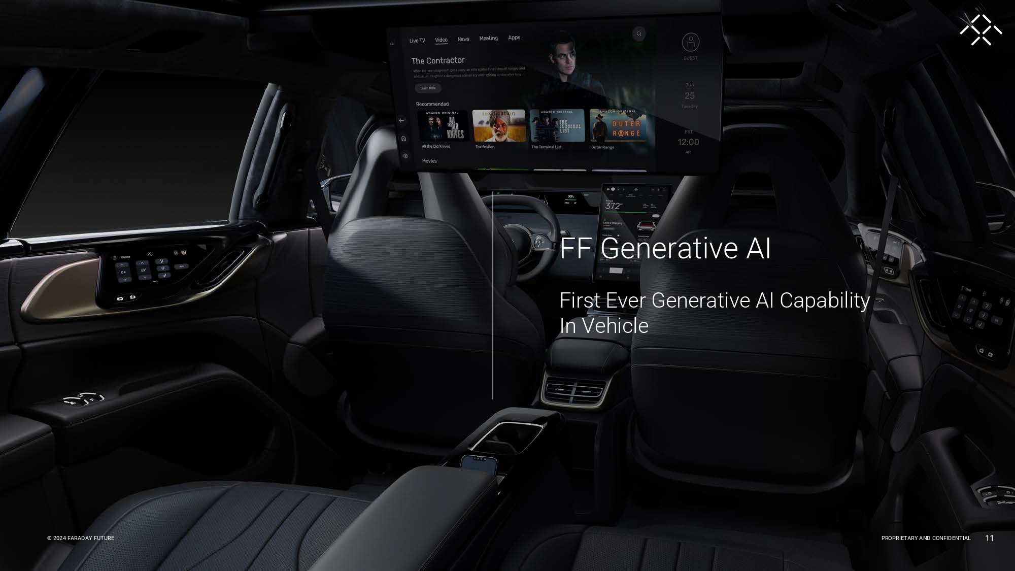 FF Geneíative AI Fiíst Eveí Geneíative AI Capability In Vehicle 11 © 2024 FARADAY FUTURE PROPRIETARY AND CONFIDENTIAL