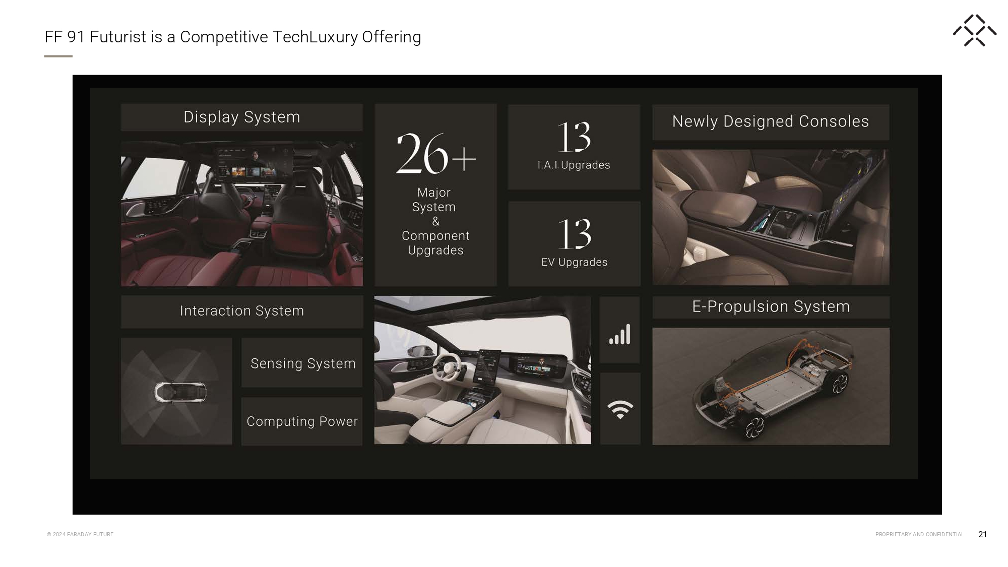 FF 91 Futuíist is a Competitive TechLuxuíy Offeíing 21 © 2024 FARADAY FUTURE PROPRIETARY AND CONFIDENTIAL .