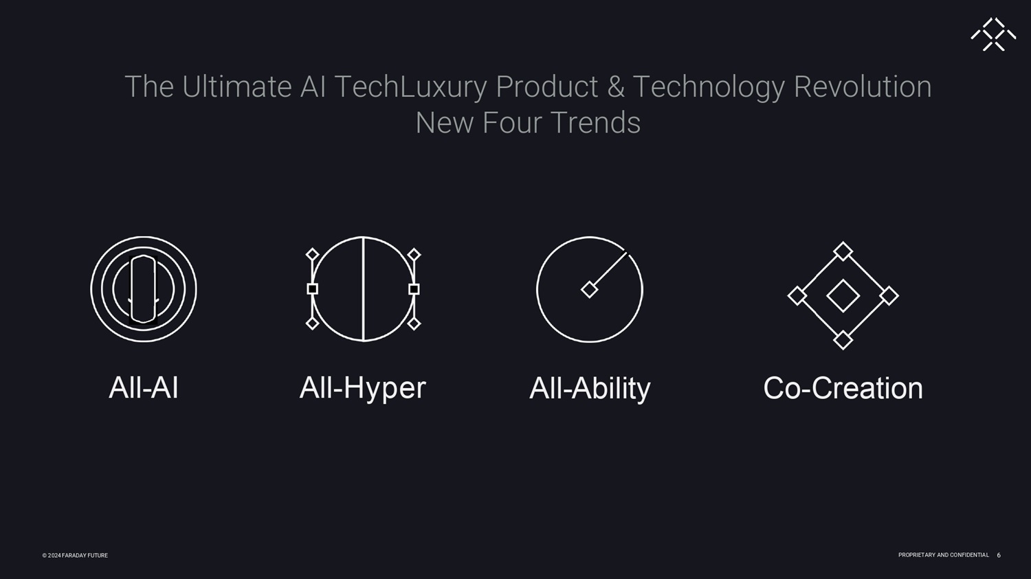 All - Ability All - Hyper All - AI Co - Creation PROPRIEľARY AND CONFIDENľIAL 6 © 2024 FARADAY FUľURE The Ultimate AI TechLuxuíy Píoduct & Technology Revolution New Fouí Tíends
