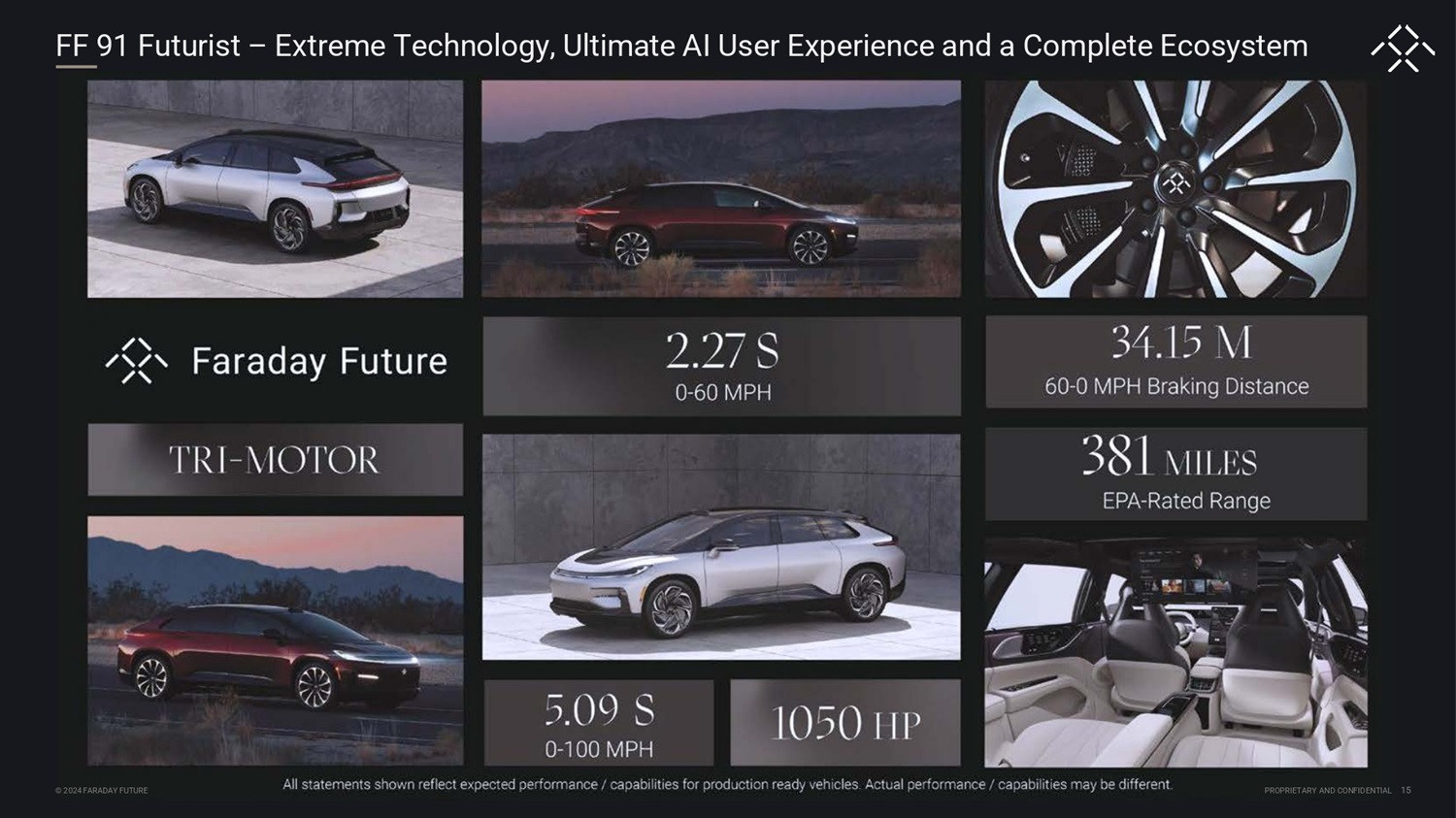 FF 91 Futuíist – Extíeme ľechnology, Ultimate AI Useí Expeíience and a Complete Ecosystem 15 © 2024 FARADAY FUľURE PROPRIEľARY AND CONFIDENľIAL