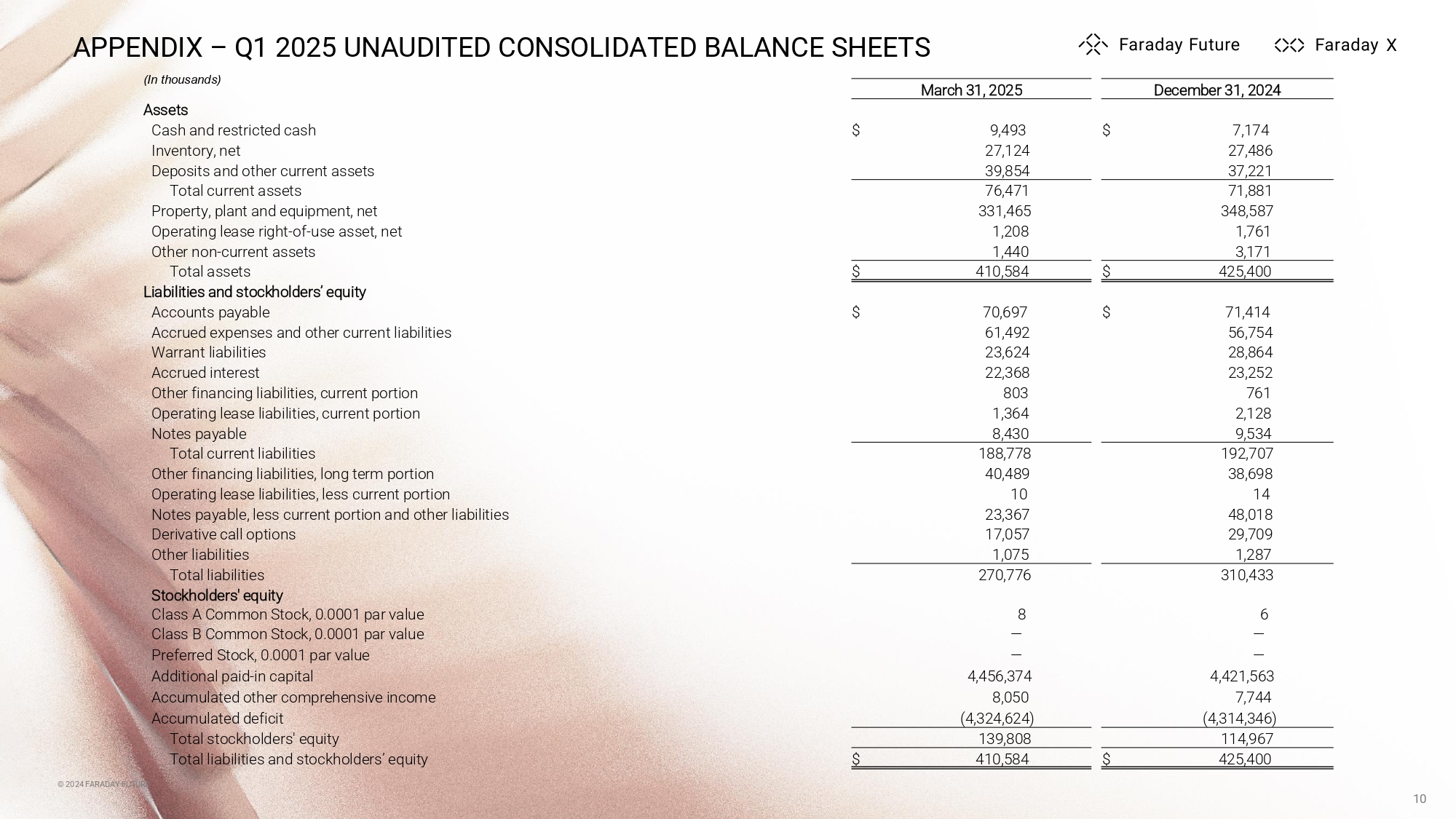 © 2024 FARADAY FUTURE Faraday Future Intelligent Electric Inc. (Nasdaq: FFAI) Appendix May 8, 2025 = © 2024 FARADAY FUTURE