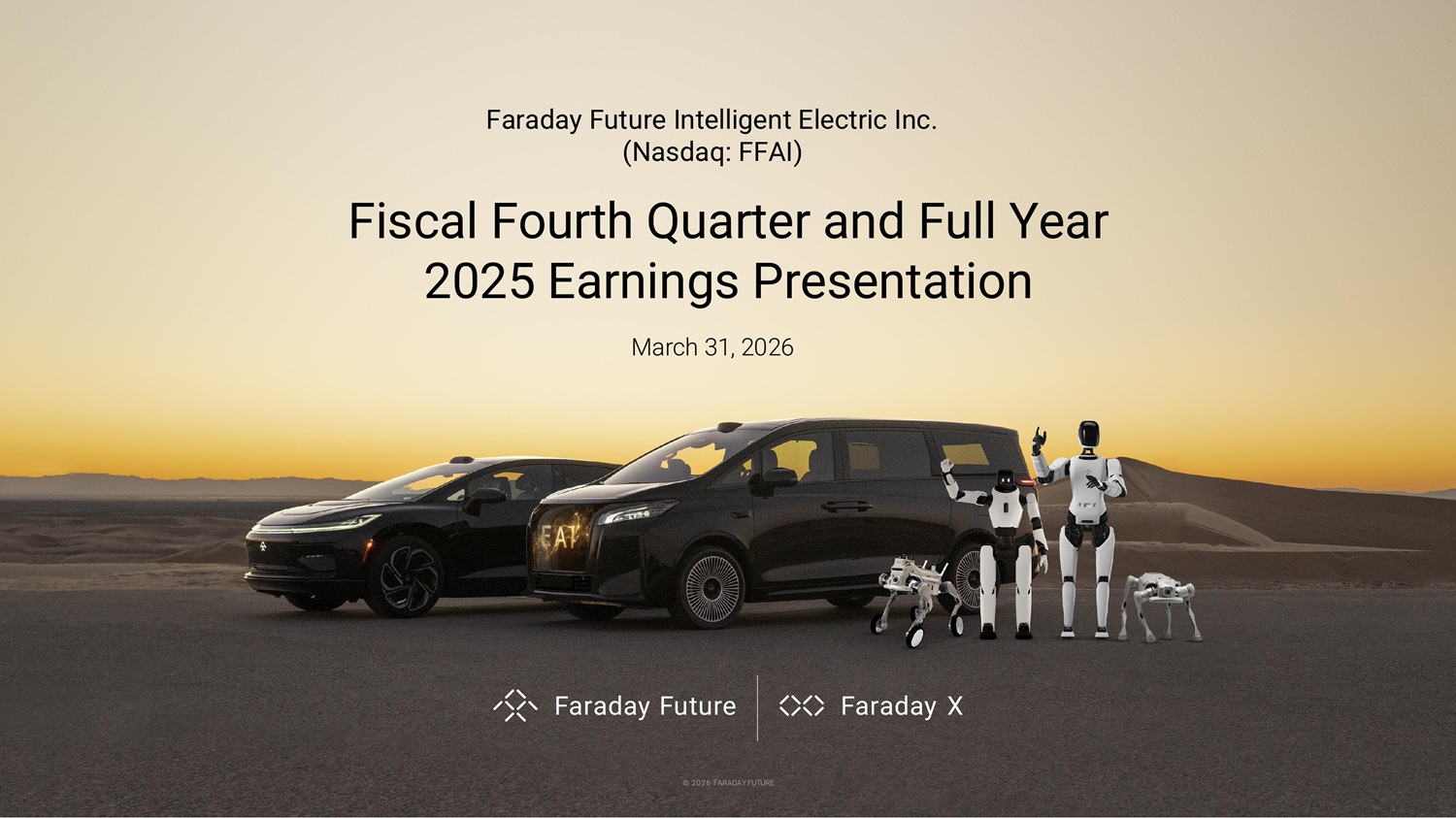 © 2026 FARADAY FUTURE Faraday Future Intelligent Electric Inc. (Nasdaq: FFAI) Fiscal Fourth Quarter and Full Year 2025 Earnings Presentation March 31, 2026