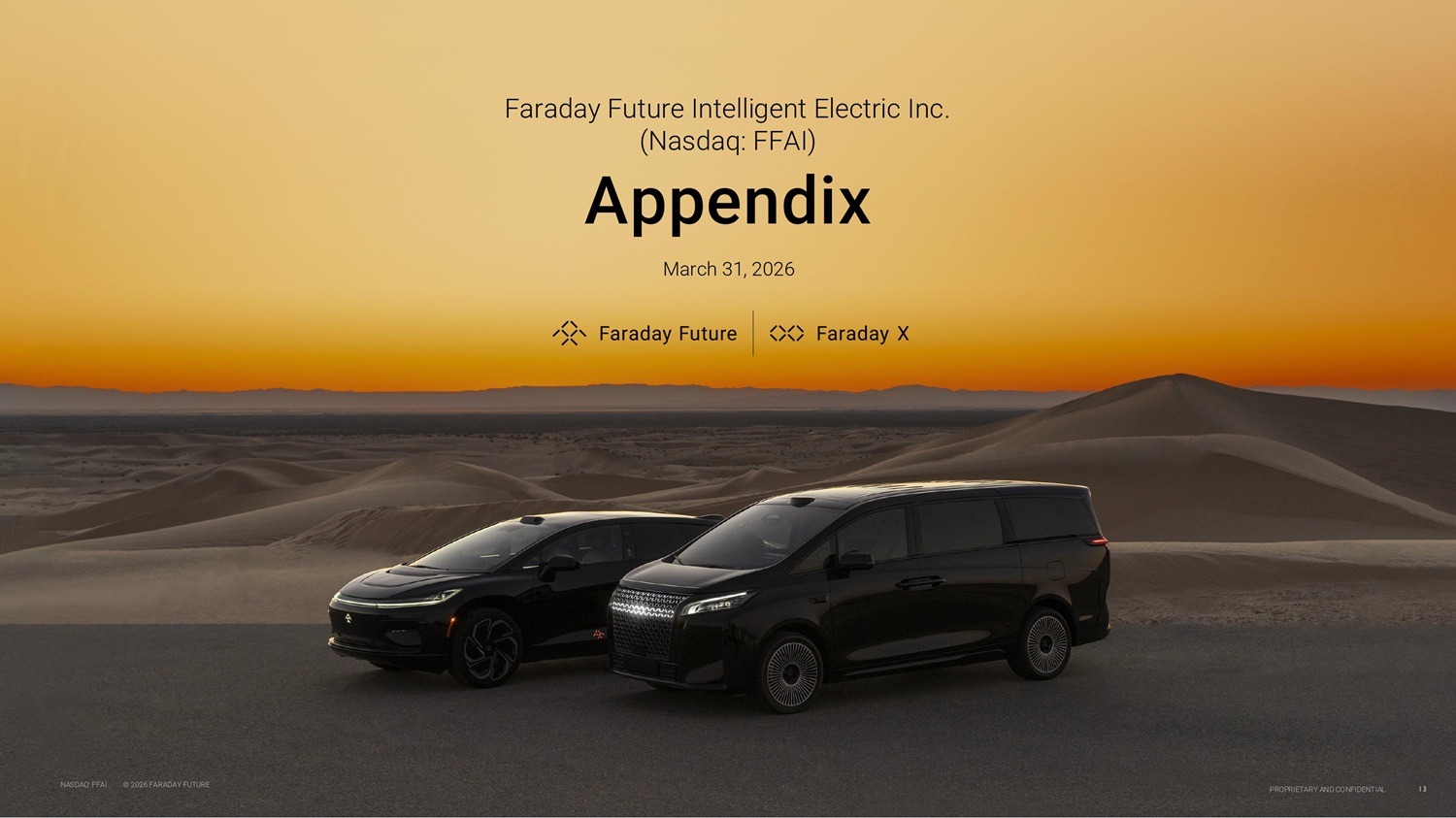 Faraday Future Intelligent Electric Inc. (Nasdaq: FFAI) Appendix March 31, 2026 NASDAQ: FFAI © 2026 FARADAY FUTURE 13 PROPRIETARY AND CONFIDENTIAL