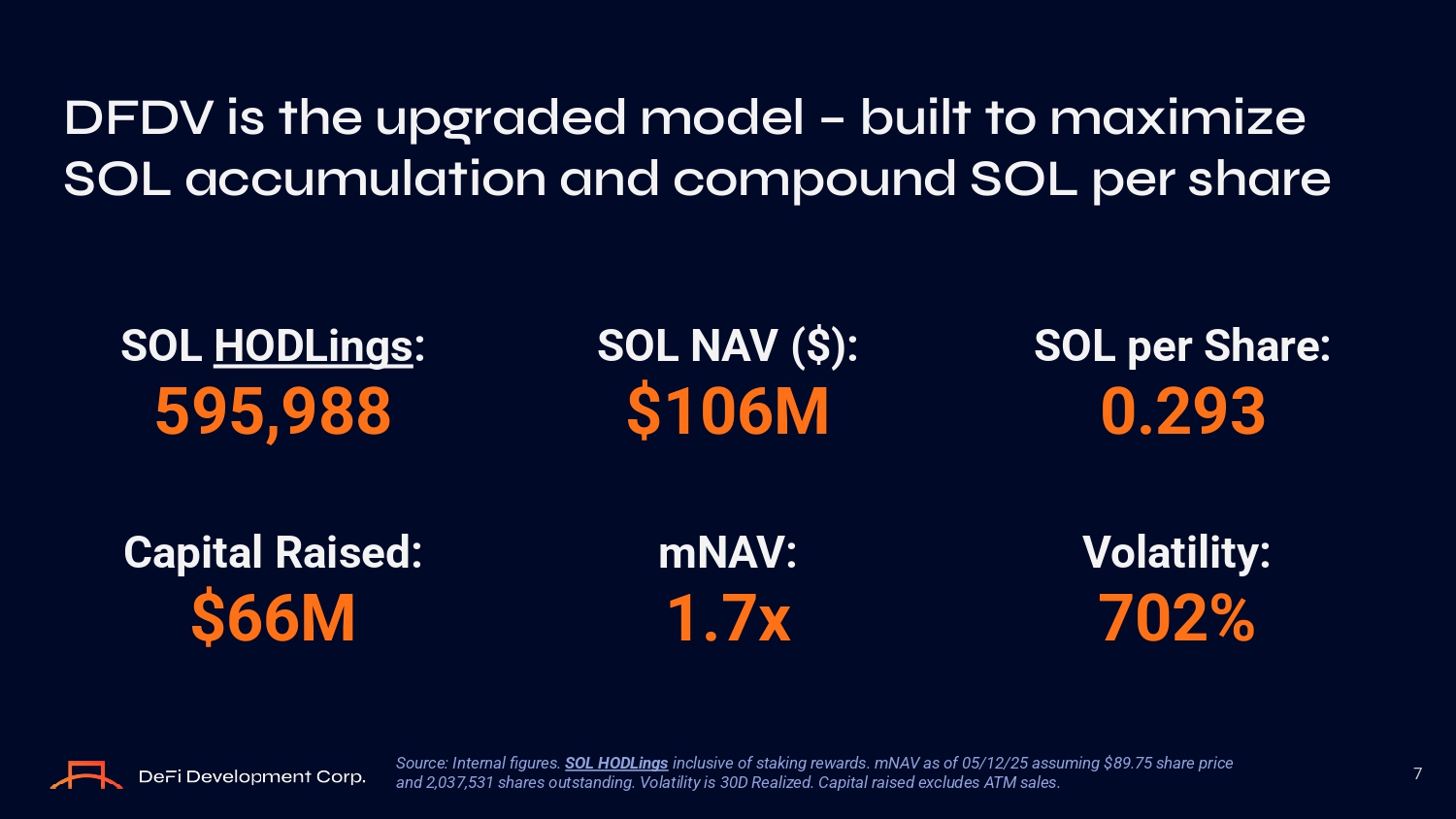DFDV’s reinf O rcing flywheels c O mp O und SOL/share Raise Capital at >1x NAV Buy Locked and Unlocked SOL Grow NAV Financial Flywheel Optimized Validator Tech Maximize Staking Yield Increase Delegation Tech Flywheel Strengthen Industry Relationships Expand Commercial Opportunities Enhance Market Reputation Crypto Native Flywheel