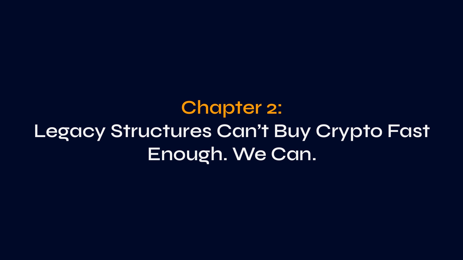 Chapter 2: Legacy Structures Can’t Buy Crypt O Fast En O ugh. We Can.