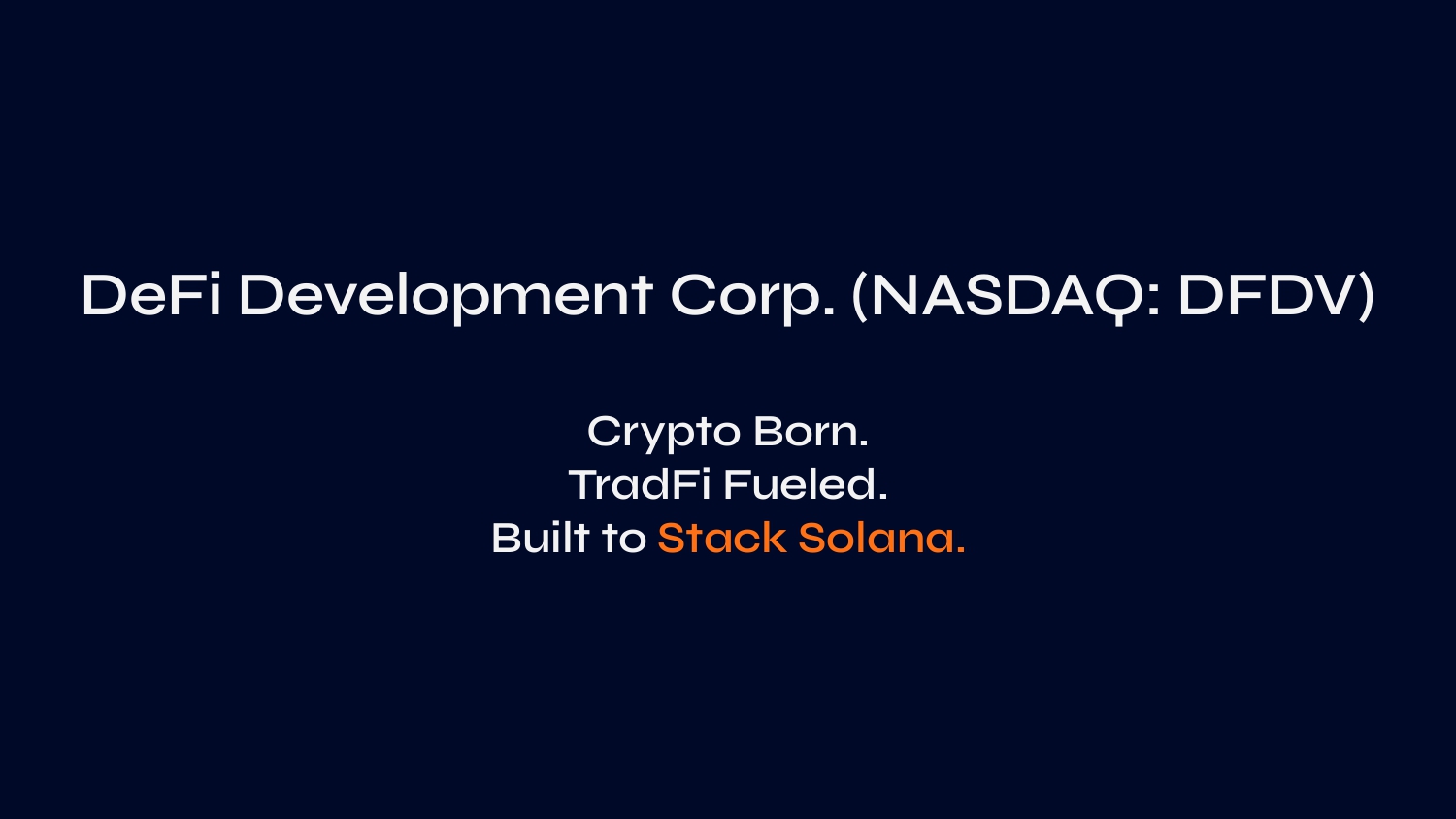 DeFi Devel O pment C O rp. (NASDAQ: DFDV) Crypt O B O rn. TradFi Fueled. Built t O Stack S O lana.