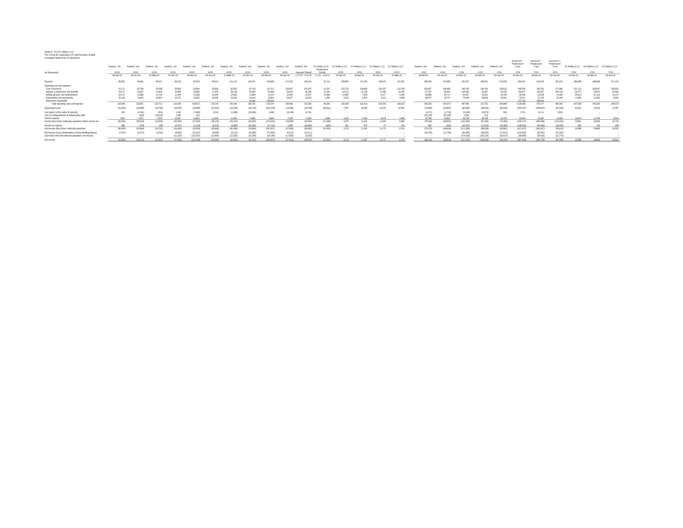 System1, Inc./S1 Holdco LLC Pro Forma for Disposition of Total Security Limited Unaudited Statements of Operations System1, Inc. System1, Inc. System1, Inc. System1, Inc. System1, Inc. System1, Inc. System1, Inc. System1, Inc. System1, Inc. System1, Inc. System1, Inc. S1 Holdco LLC S1 Holdco LLC S1 Holdco LLC S1 Holdco LLC S1 Holdco LLC System1, Inc. System1, Inc. System1, Inc. System1, Inc. System1, Inc. Successor + Predecessor Total Successor + Predecessor Total Successor + Predecessor Total S1 Holdco LLC S1 Holdco LLC S1 Holdco LLC (in thousands) QTD QTD QTD QTD QTD QTD QTD QTD QTD QTD Sucessor Period Predecessor Period QTD QTD QTD QTD YTD YTD YTD YTD YTD YTD YTD YTD YTD YTD YTD 30-Sep-24 30-Jun-24 31-Mar-24 31-Dec-23 30-Sep-23 30-Jun-23 31-Mar-23 31-Dec-22 30-Sep-22 30-Jun-22 1.27.22 - 3.31.22 1.1.22 - 1.26.22 31-Dec-21 30-Sep-21 30-Jun-21 31-Mar-21 30-Sep-24 30-Jun-24 31-Dec-23 30-Sep-23 30-Jun-23 31-Dec-22 30-Sep-22 30-Jun-22 31-Dec-21 30-Sep-21 30-Jun-21 Revenue 88,832 94,581 84,917 96,120 87,818 96,914 121,119 140,071 156,895 177,029 138,234 52,712 199,803 171,445 169,579 147,561 268,330 179,498 401,971 305,851 218,033 664,941 524,870 367,975 688,389 488,586 317,140 Operating cost and expenses: Cost of revenues 51,171 55,798 53,698 58,550 50,584 56,656 82,953 97,145 111,217 128,507 101,970 41,507 155,276 128,885 126,167 110,785 160,667 109,496 248,745 190,194 139,610 480,346 383,201 271,984 521,113 365,837 236,952 Salaries, commissions, and benefits 29,177 33,937 24,483 24,608 26,695 27,054 28,148 29,040 30,469 30,249 48,288 31,181 18,715 15,139 17,698 15,195 87,597 58,420 106,505 81,897 55,202 169,227 140,187 109,718 66,747 48,032 32,893 Selling, general, and administrative 10,172 13,989 12,728 12,304 11,808 15,340 14,855 13,869 11,572 12,984 12,407 15,665 14,650 7,936 6,277 6,950 36,889 26,717 54,307 42,004 30,195 66,496 52,628 41,056 35,813 21,163 13,227 Depreciation and amortization 20,128 19,943 19,804 19,737 19,585 19,689 19,393 19,102 18,924 18,827 12,618 1,000 3,625 3,459 3,112 3,689 59,875 39,747 78,403 58,666 39,081 70,471 51,370 32,446 13,885 10,260 6,801 Impairment of goodwill - - - - - - - 26,636 346,092 - - - - - - - - - - - - 372,728 346,092 - - - - Total operating costs and expenses 110,648 123,667 110,712 115,199 108,673 118,739 145,349 185,791 518,274 190,568 175,283 89,353 192,266 155,419 153,254 136,619 345,028 234,379 487,960 372,761 264,088 1,159,268 973,477 455,203 637,558 445,292 289,873 Operating income (21,816) (29,086) (25,795) (19,079) (20,855) (21,825) (24,230) (45,720) (361,379) (13,538) (37,049) (36,641) 7,537 16,026 16,325 10,942 (76,698) (54,881) (85,989) (66,910) (46,055) (494,327) (448,607) (87,228) 50,831 43,294 27,267 Loss (gain) on fair value of warrants 281 (1,501) (251) 1,764 (7,482) 2,018 (1,409) (10,360) 4,489 (4,139) 13,761 - - - - - (1,471) (1,752) (5,109) (6,873) 609 3,751 14,111 9,622 - - - Loss on extinguishment of related-party debt - (433) (19,676) 1,385 619 - - - - - - - - - - - (20,109) (20,109) 2,004 619 - - - - - - - Interest expense 7,957 7,871 7,970 11,957 13,053 12,334 11,402 9,692 9,664 7,200 5,054 1,049 4,162 4,184 4,476 4,048 23,799 15,841 48,746 36,789 23,736 32,659 22,967 13,303 16,870 12,708 8,524 Income (loss) from continuing operations before income tax (30,054) (35,023) (13,839) (34,185) (27,045) (36,176) (34,224) (45,052) (375,532) (16,599) (55,864) (37,690) 3,375 11,842 11,849 6,894 (78,916) (48,862) (131,630) (97,445) (70,400) (530,737) (485,685) (110,153) 33,961 30,586 18,743 Income tax expense 585 (178) (48) (8,757) (1,116) (6,670) (3,829) (15,252) (77,715) 1,089 (16,803) (629) 262 475 77 151 359 (226) (20,372) (11,615) (10,499) (109,310) (94,058) (16,343) 965 703 228 Net income (loss) from continuing operations (30,639) (34,845) (13,791) (25,428) (25,929) (29,506) (30,395) (29,800) (297,817) (17,688) (39,061) (37,061) 3,113 11,367 11,772 6,743 (79,275) (48,636) (111,258) (85,830) (59,901) (421,427) (391,627) (93,810) 32,996 29,883 18,515 Net Income (Loss) Attributable to Noncontrolling Interest (7,037) (8,472) (3,254) (8,903) (31,647) (8,690) (9,124) (18,089) (71,606) (8,124) (13,111) - - - - - (18,763) (11,726) (58,364) (49,461) (17,814) (110,930) (92,841) (21,235) - - - Gain (loss) from discontinued operations, net of taxes - - - (11,105) (137,207) (13,484) (12,533) (21,040) (14,146) (17,850) (3,923) - - - - - - - (174,329) (163,224) (26,017) (56,959) (35,919) (21,773) - - - Net income (23,602) (26,373) (10,537) (27,630) (131,489) (34,300) (33,804) (32,751) (240,357) (27,414) (29,873) (37,061) 3,113 11,367 11,772 6,743 (60,512) (36,910) (227,222) (199,593) (68,104) (367,456) (334,705) (94,348) 32,996 29,883 18,515