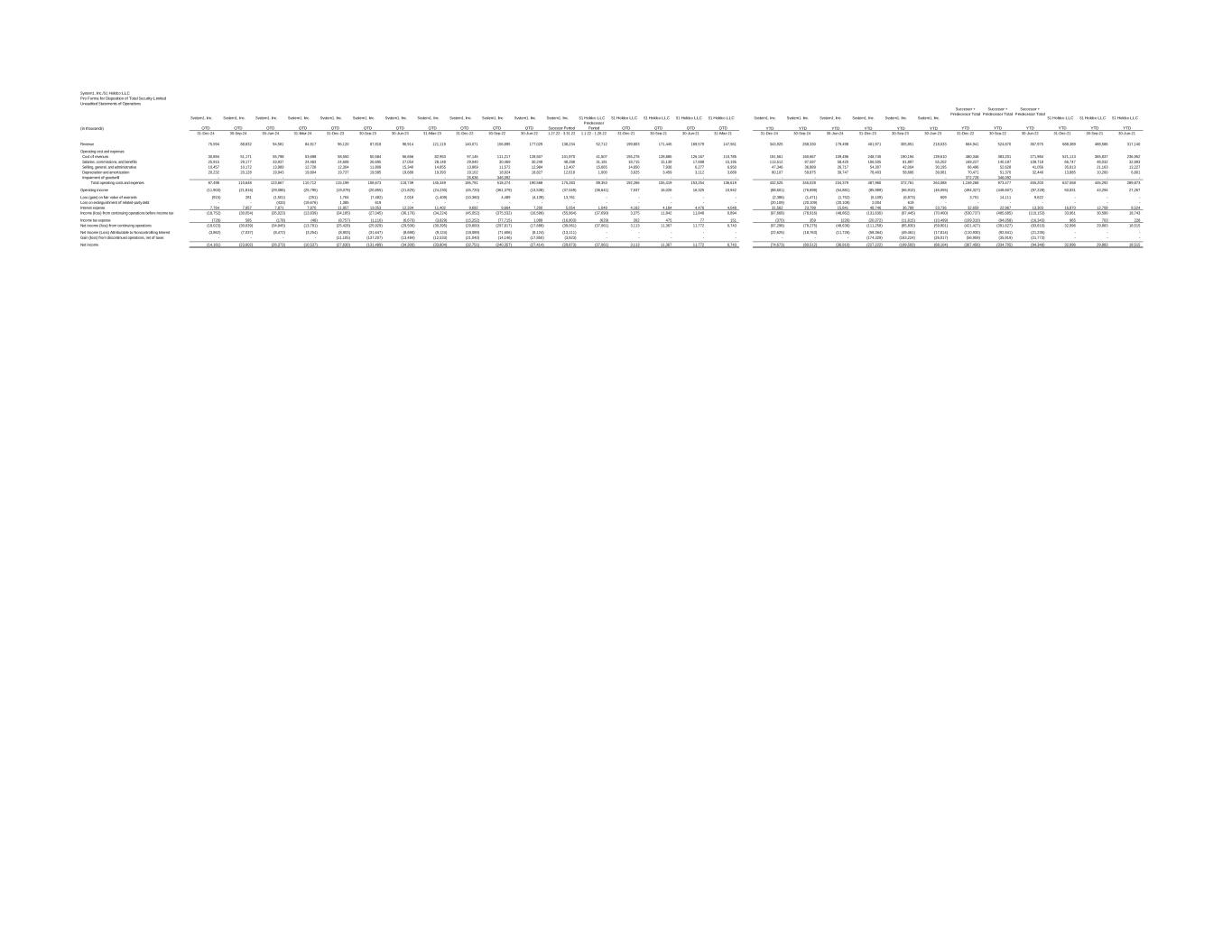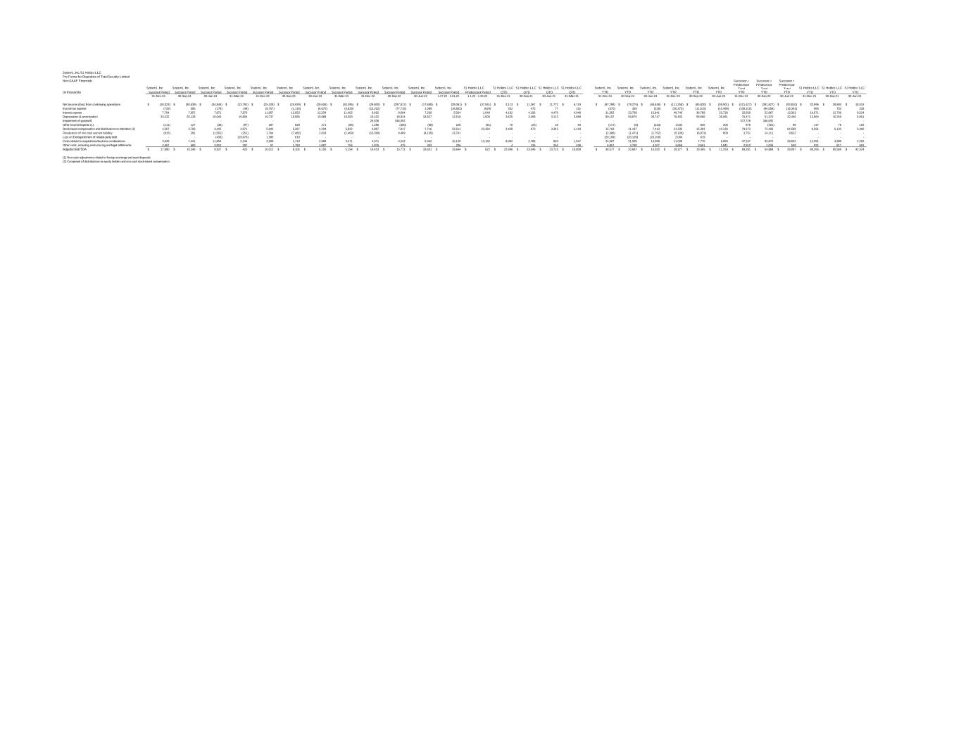System1, Inc./S1 Holdco LLC Pro Forma for Disposition of Total Security Limited Unaudited Statements of Operations System1, Inc. System1, Inc. System1, Inc. System1, Inc. System1, Inc. System1, Inc. System1, Inc. System1, Inc. System1, Inc. System1, Inc. System1, Inc. System1, Inc. S1 Holdco LLC S1 Holdco LLC S1 Holdco LLC S1 Holdco LLC S1 Holdco LLC System1, Inc. System1, Inc. System1, Inc. System1, Inc. System1, Inc. System1, Inc. Successor + Predecessor Total Successor + Predecessor Total Successor + Predecessor Total S1 Holdco LLC S1 Holdco LLC S1 Holdco LLC (in thousands) QTD QTD QTD QTD QTD QTD QTD QTD QTD QTD QTD Sucessor Period Predecessor Period QTD QTD QTD QTD YTD YTD YTD YTD YTD YTD YTD YTD YTD YTD YTD YTD 31-Dec-24 30-Sep-24 30-Jun-24 31-Mar-24 31-Dec-23 30-Sep-23 30-Jun-23 31-Mar-23 31-Dec-22 30-Sep-22 30-Jun-22 1.27.22 - 3.31.22 1.1.22 - 1.26.22 31-Dec-21 30-Sep-21 30-Jun-21 31-Mar-21 31-Dec-24 30-Sep-24 30-Jun-24 31-Dec-23 30-Sep-23 30-Jun-23 31-Dec-22 30-Sep-22 30-Jun-22 31-Dec-21 30-Sep-21 30-Jun-21 Revenue 75,594 88,832 94,581 84,917 96,120 87,818 96,914 121,119 140,071 156,895 177,029 138,234 52,712 199,803 171,445 169,579 147,561 343,925 268,330 179,498 401,971 305,851 218,033 664,941 524,870 367,975 688,389 488,586 317,140 Operating cost and expenses: Cost of revenues 30,894 51,171 55,798 53,698 58,550 50,584 56,656 82,953 97,145 111,217 128,507 101,970 41,507 155,276 128,885 126,167 110,785 191,561 160,667 109,496 248,745 190,194 139,610 480,346 383,201 271,984 521,113 365,837 236,952 Salaries, commissions, and benefits 25,915 29,177 33,937 24,483 24,608 26,695 27,054 28,148 29,040 30,469 30,249 48,288 31,181 18,715 15,139 17,698 15,195 113,512 87,597 58,420 106,505 81,897 55,202 169,227 140,187 109,718 66,747 48,032 32,893 Selling, general, and administrative 10,457 10,172 13,989 12,728 12,304 11,808 15,340 14,855 13,869 11,572 12,984 12,407 15,665 14,650 7,936 6,277 6,950 47,346 36,889 26,717 54,307 42,004 30,195 66,496 52,628 41,056 35,813 21,163 13,227 Depreciation and amortization 20,232 20,128 19,943 19,804 19,737 19,585 19,689 19,393 19,102 18,924 18,827 12,618 1,000 3,625 3,459 3,112 3,689 80,107 59,875 39,747 78,403 58,666 39,081 70,471 51,370 32,446 13,885 10,260 6,801 Impairment of goodwill - - - - - - - - 26,636 346,092 - - - - - - - - - - - - - 372,728 346,092 - - - - Total operating costs and expenses 87,498 110,648 123,667 110,712 115,199 108,673 118,739 145,349 185,791 518,274 190,568 175,283 89,353 192,266 155,419 153,254 136,619 432,525 345,028 234,379 487,960 372,761 264,088 1,159,268 973,477 455,203 637,558 445,292 289,873 Operating income (11,903) (21,816) (29,086) (25,795) (19,079) (20,855) (21,825) (24,230) (45,720) (361,379) (13,538) (37,049) (36,641) 7,537 16,026 16,325 10,942 (88,601) (76,698) (54,881) (85,989) (66,910) (46,055) (494,327) (448,607) (87,228) 50,831 43,294 27,267 Loss (gain) on fair value of warrants (915) 281 (1,501) (251) 1,764 (7,482) 2,018 (1,409) (10,360) 4,489 (4,139) 13,761 - - - - - (2,386) (1,471) (1,752) (5,109) (6,873) 609 3,751 14,111 9,622 - - - Loss on extinguishment of related-party debt - - (433) (19,676) 1,385 619 - - - - - - - - - - - (20,109) (20,109) (20,109) 2,004 619 - - - - - - - Interest expense 7,764 7,957 7,871 7,970 11,957 13,053 12,334 11,402 9,692 9,664 7,200 5,054 1,049 4,162 4,184 4,476 4,048 31,562 23,799 15,841 48,746 36,789 23,736 32,659 22,967 13,303 16,870 12,708 8,524 Income (loss) from continuing operations before income tax (18,752) (30,054) (35,023) (13,839) (34,185) (27,045) (36,176) (34,224) (45,052) (375,532) (16,599) (55,864) (37,690) 3,375 11,842 11,849 6,894 (97,668) (78,916) (48,862) (131,630) (97,445) (70,400) (530,737) (485,685) (110,153) 33,961 30,586 18,743 Income tax expense (729) 585 (178) (48) (8,757) (1,116) (6,670) (3,829) (15,252) (77,715) 1,089 (16,803) (629) 262 475 77 151 (370) 359 (226) (20,372) (11,615) (10,499) (109,310) (94,058) (16,343) 965 703 228 Net income (loss) from continuing operations (18,023) (30,639) (34,845) (13,791) (25,428) (25,929) (29,506) (30,395) (29,800) (297,817) (17,688) (39,061) (37,061) 3,113 11,367 11,772 6,743 (97,298) (79,275) (48,636) (111,258) (85,830) (59,901) (421,427) (391,627) (93,810) 32,996 29,883 18,515 Net Income (Loss) Attributable to Noncontrolling Interest (3,862) (7,037) (8,472) (3,254) (8,903) (31,647) (8,690) (9,124) (18,089) (71,606) (8,124) (13,111) - - - - - (22,625) (18,763) (11,726) (58,364) (49,461) (17,814) (110,930) (92,841) (21,235) - - - Gain (loss) from discontinued operations, net of taxes - - - - (11,105) (137,207) (13,484) (12,533) (21,040) (14,146) (17,850) (3,923) - - - - - - - - (174,329) (163,224) (26,017) (56,959) (35,919) (21,773) - - - Net income (14,161) (23,602) (26,373) (10,537) (27,630) (131,489) (34,300) (33,804) (32,751) (240,357) (27,414) (29,873) (37,061) 3,113 11,367 11,772 6,743 (74,673) (60,512) (36,910) (227,222) (199,593) (68,104) (367,456) (334,705) (94,348) 32,996 29,883 18,515
