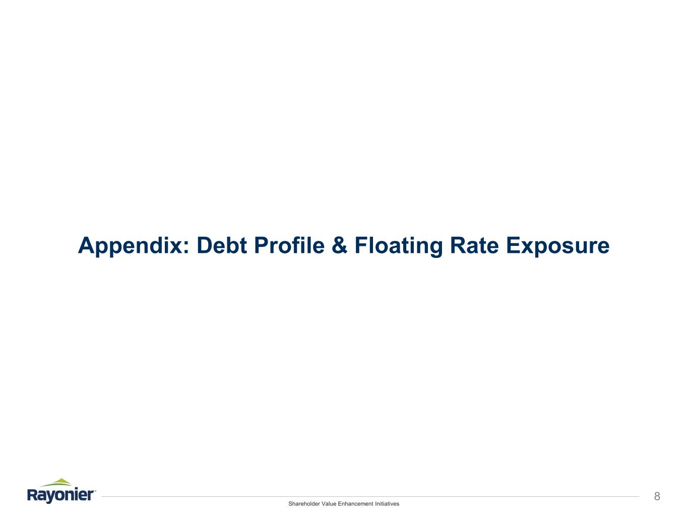 Shareholder Value Enhancement Initiatives Appendix: Debt Profile & Floating Rate Exposure 8