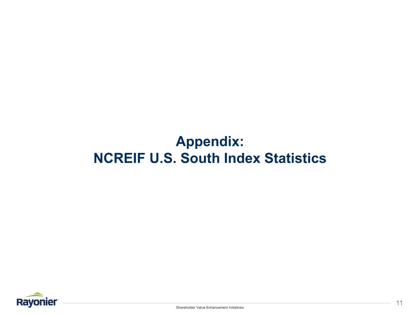 Shareholder Value Enhancement Initiatives Appendix: NCREIF U.S. South Index Statistics 11