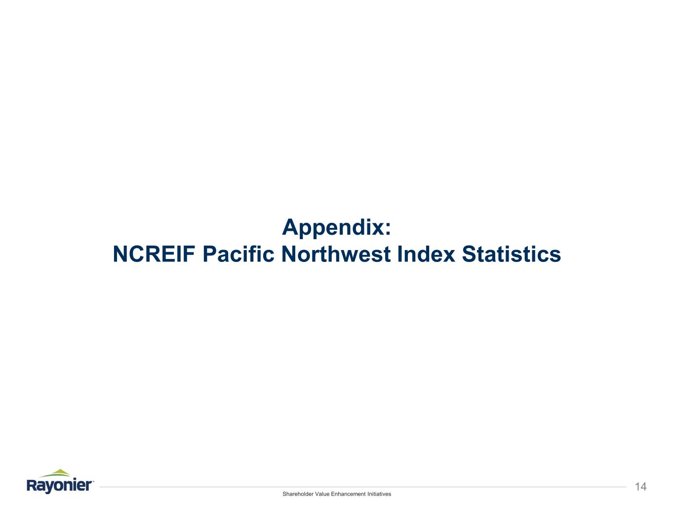 Shareholder Value Enhancement Initiatives Appendix: NCREIF Pacific Northwest Index Statistics 14