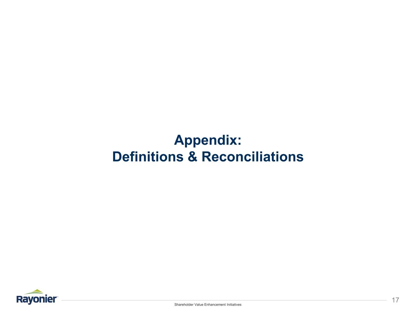Shareholder Value Enhancement Initiatives Appendix: Definitions & Reconciliations 17