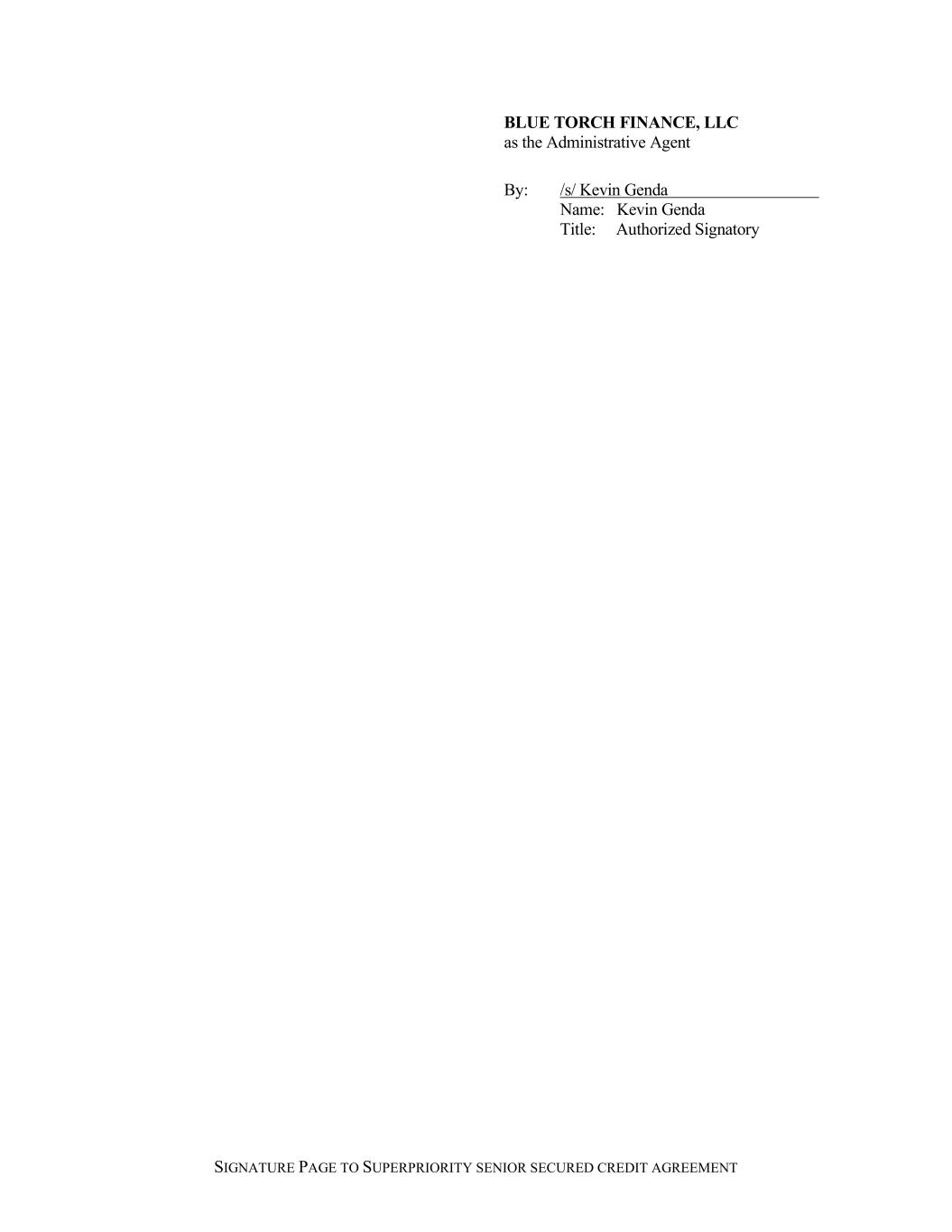 SIGNATURE PAGE TO SUPERPRIORITY SENIOR SECURED CREDIT AGREEMENT BLUE TORCH FINANCE, LLC as the Administrative Agent By: /s/ Kevin Genda Name: Kevin Genda Title: Authorized Signatory