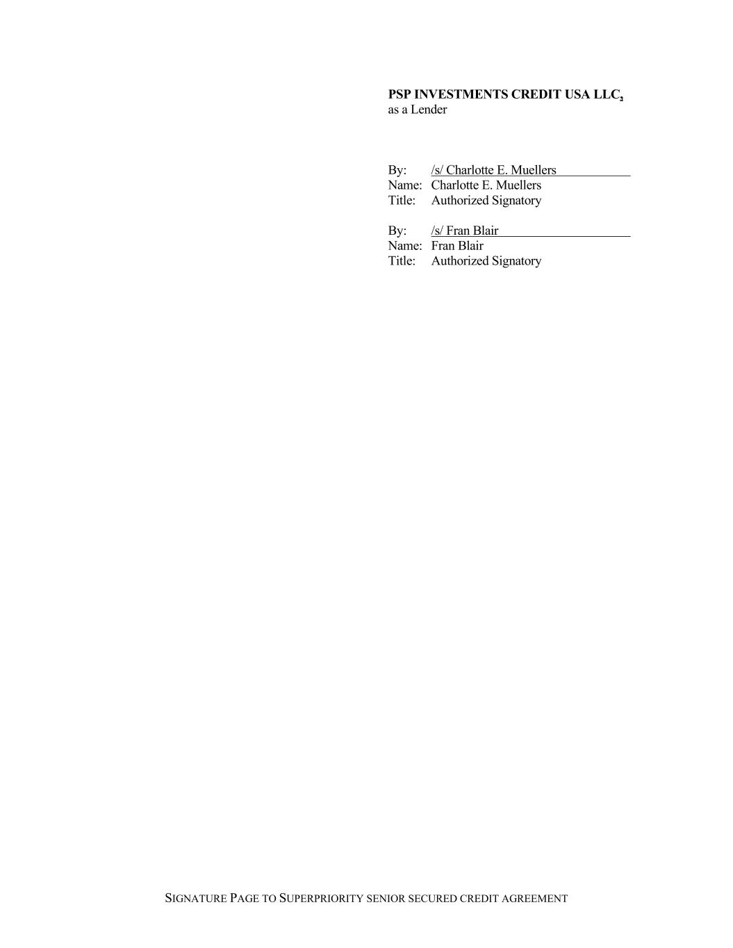SIGNATURE PAGE TO SUPERPRIORITY SENIOR SECURED CREDIT AGREEMENT PSP INVESTMENTS CREDIT USA LLC, as a Lender By: /s/ Charlotte E. Muellers Name: Charlotte E. Muellers Title: Authorized Signatory By: /s/ Fran Blair Name: Fran Blair Title: Authorized Signatory