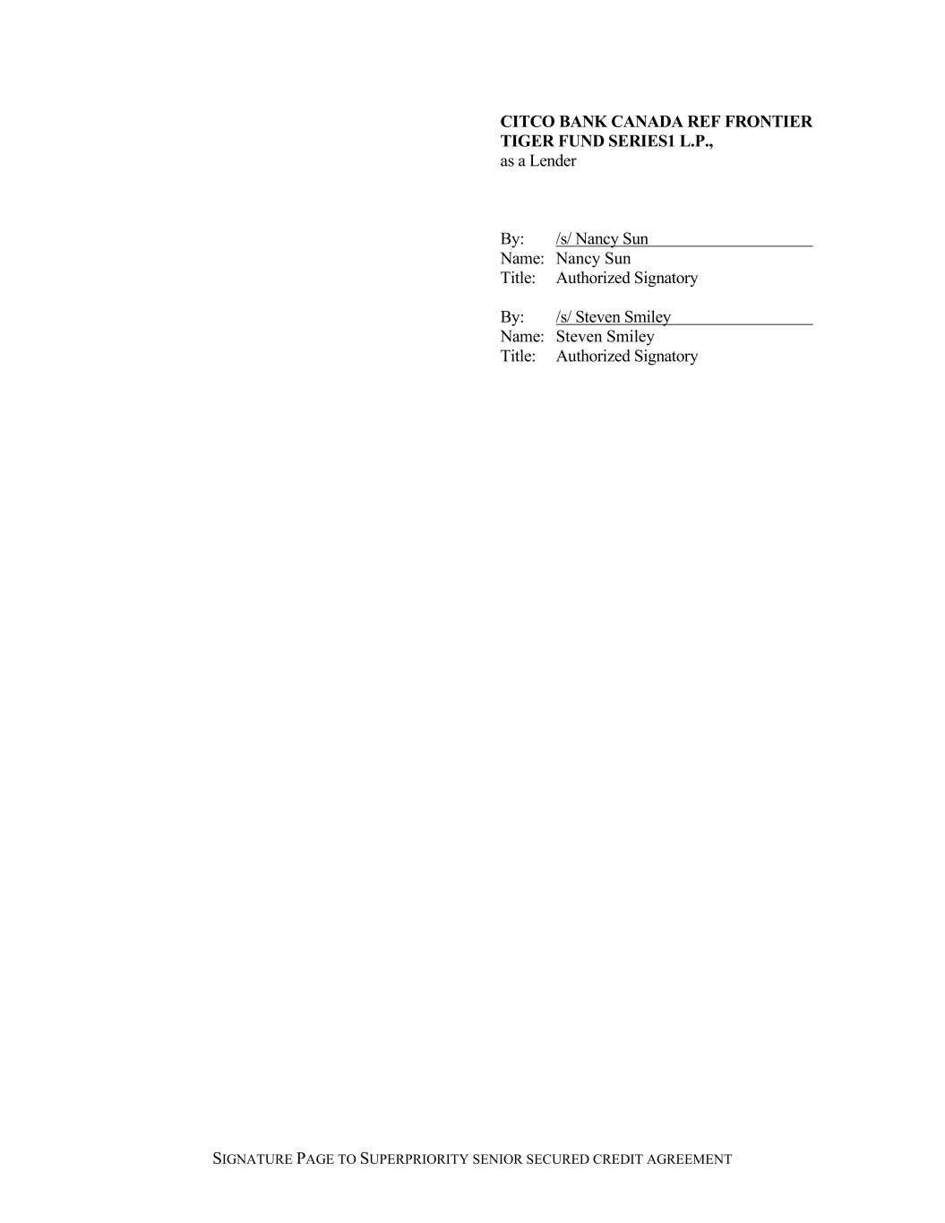 SIGNATURE PAGE TO SUPERPRIORITY SENIOR SECURED CREDIT AGREEMENT CITCO BANK CANADA REF FRONTIER TIGER FUND SERIES1 L.P., as a Lender By: /s/ Nancy Sun Name: Nancy Sun Title: Authorized Signatory By: /s/ Steven Smiley Name: Steven Smiley Title: Authorized Signatory
