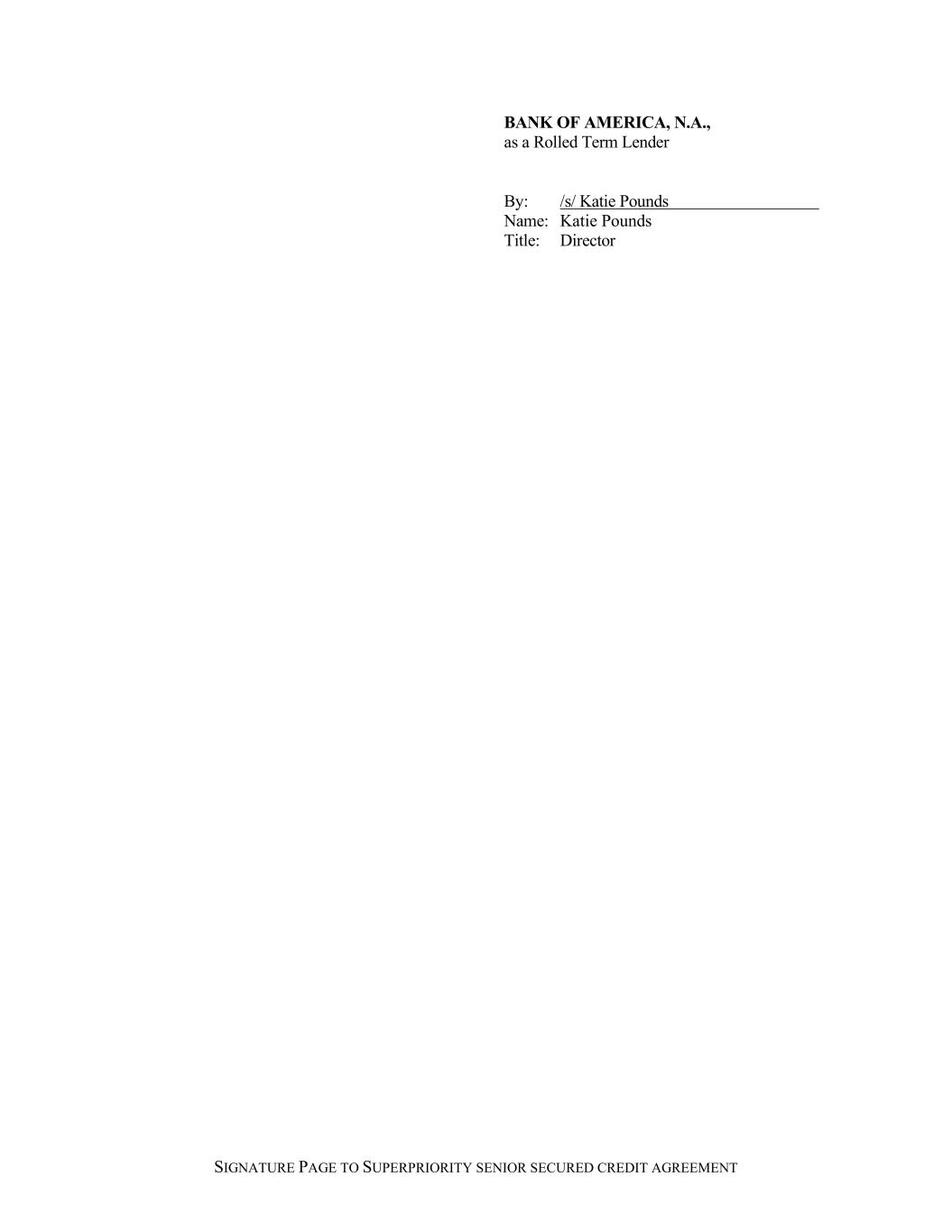 SIGNATURE PAGE TO SUPERPRIORITY SENIOR SECURED CREDIT AGREEMENT BANK OF AMERICA, N.A., as a Rolled Term Lender By: /s/ Katie Pounds Name: Katie Pounds Title: Director