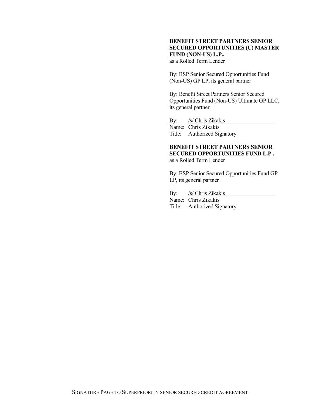 SIGNATURE PAGE TO SUPERPRIORITY SENIOR SECURED CREDIT AGREEMENT BENEFIT STREET PARTNERS SENIOR SECURED OPPORTUNITIES (U) MASTER FUND (NON-US) L.P., as a Rolled Term Lender By: BSP Senior Secured Opportunities Fund (Non-US) GP LP, its general partner By: Benefit Street Partners Senior Secured Opportunities Fund (Non-US) Ultimate GP LLC, its general partner By: /s/ Chris Zikakis Name: Chris Zikakis Title: Authorized Signatory BENEFIT STREET PARTNERS SENIOR SECURED OPPORTUNITIES FUND L.P., as a Rolled Term Lender By: BSP Senior Secured Opportunities Fund GP LP, its general partner By: /s/ Chris Zikakis Name: Chris Zikakis Title: Authorized Signatory